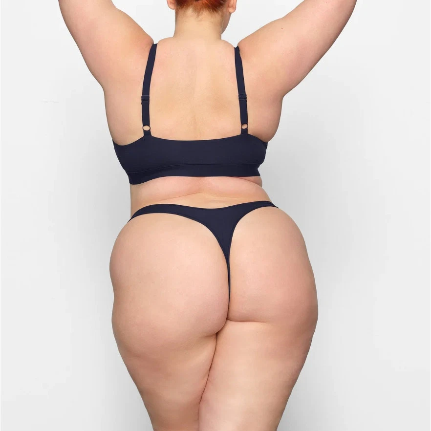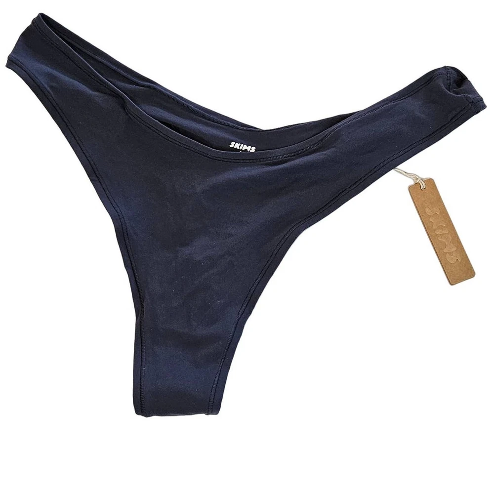 Skims Fits Everybody Dipped Front Thong Color Deep Royal Plus 3x Featuring a dipped front and high cut fit, this flattering throwback thong style is updated in a soft, butter fabric with innovative stretch. The Dipped Thong has a no cut design that prevents digging and gives a second skin feel. Dipped V Front, Thong Back, Quick-Dry, Max-Strech Technology Kellee Is Size 14 And 5’ 9”, Wearing Skims 2x 76% Polyamide / 24% Elastane Machine Wash Cold, Non Chlorine Bleach, Cool Iron, Do Not Dry Clean pn-dth-2027 Size 3x Approximate Measurement: waistband - 12" across New with tags, no flaws. Model is wearing the same style, different color. Smoke free, dog friendly home.