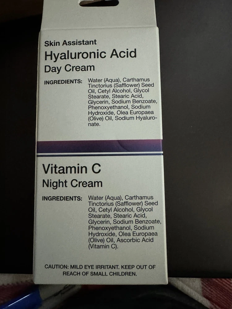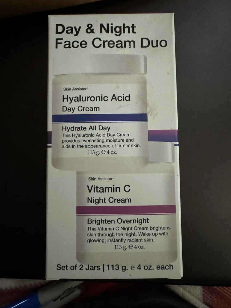Skin Assistant Day & Night Face Cream Duo Hyaluronic Acid Vitamin C 4oz each.