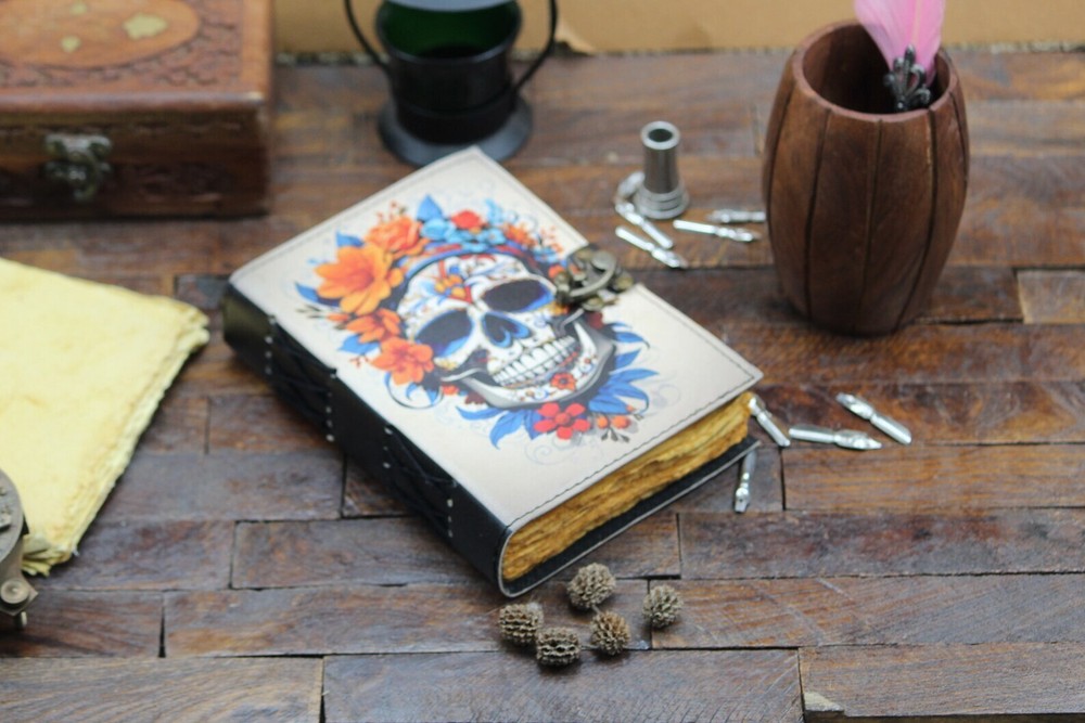 This luxury edition leather journal features a unique skull print on the cover, making it a limited edition collectible item. Handmade in India, this personalized journal is perfect for those looking for a special and exclusive writing space. The first color photo of the journal adds a distinctive touch to this special edition piece. With a luxurious leather cover and personalized attributes, this journal is ideal for those seeking a high-quality and stylish writing instrument. Photo personalization on cover - If you want me to print an image, please attach the image Etsy conversation box after you place your order and choos photo personalization in the variation Option if you don’t want personalization so please choose skull journal. Perfect Gift idea for Valentines Day Mushroom Printed Blank Spell Book of Shadowd Leather Journal Christmas gifts for womens - 200 Deckle-Edged Pages - Choose Your Size" Unleash your creativity with our Exquisite Handcrafted Leather Journal featuring a Mashroom Print. This journal is a masterpiece, not just for your ideas but for your senses too. It boasts 200 premium deckle-edged pages that invite your pen to dance across their textured surface. Available in various sizes - 7x5, 8x6, 10x7, and 13x10 - you can choose the perfect canvas for your imagination. The genuine leather cover exudes quality and durability, and it even comes with a one-month warranty. Whether you're gifting it or keeping it for yourself, this journal is designed to inspire and endure. Get ready to embark on a creative journey like no other. Mushroom ,Pink Mushroom,Blank Spell book,Book of shadows,Leather journal,Moon phases,Mushroom design ,Vintage style ,Nature inspired,Mushroom journal,Red mushroom ,Fairy forest ,Art journal, Writing diary