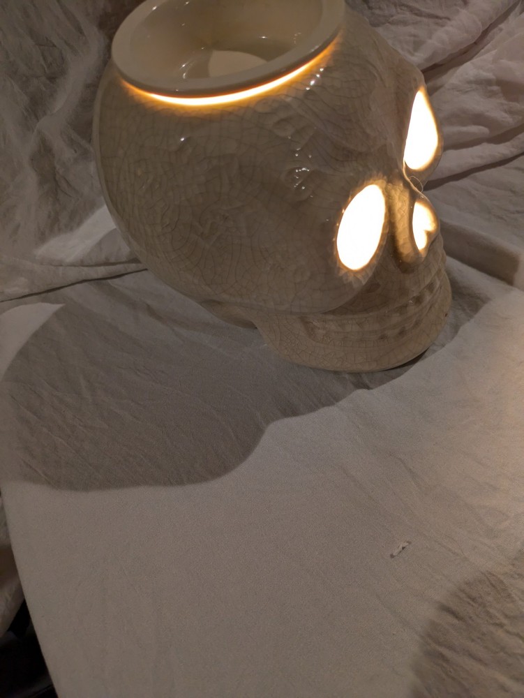 This candle warmer lamp in the shape of a skull is the perfect addition to your home decor. It is designed to warm your favorite candles and release their fragrance into the air, creating a relaxing and soothing atmosphere. The lamp is made of high-quality materials and is built to last, providing you with many years of use. It is also a great accessory for any room in your home, adding a touch of elegance and style. The lamp is easy to use and comes with instructions for optimal use. Get yours today and enjoy the warm and relaxing ambiance it creates.