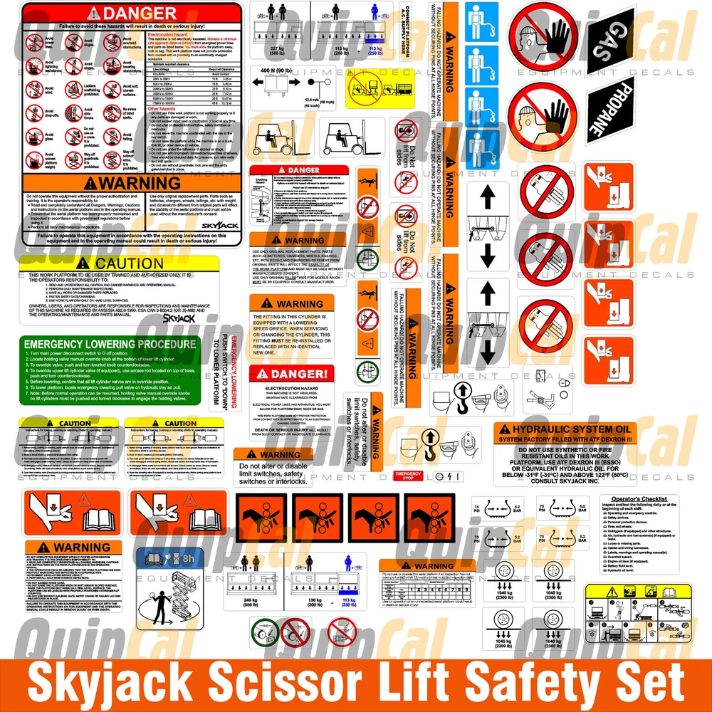 This listing is for: 1 safety and warning decal set for a Skyjack SJIII3219 or SJIII3220. Good for most Skyjack scissor lifts. See our other listings for Skyjack Decal Sets Contact us today for the safety decal set you need for your manlift or telehandler. We have decal packages for Genie, JLG, Snorkel Skyjack MEC and more. We're Quipcal, the Equipment Decal Experts. When you think "Decals" we want you to think "Quipcal" first. Contact us for the decal set you YOU need. We're Quipcal...The Equipment Decal Experts, with 40 years of decal experience, 14,000 + decal sets in our digital inventory, 4.000+ additional safety decal sets, with decals covering machines from the 1930s through 2022 and an every expanding inventory. We're creating new sets every week. Count on us to provide: Prompt, Knowledgeable, Reliable and Experienced Assistance with your order. Capability to design / produce hard to find or discontinued decals / sets We serve Dealers, Contractors, Auction Companies, Repair and Paint Shops, Farms and Ranches, Forestry and Timber Companies, Mines and Quarries and countless private owners in all 50 states, and around the world. HOW CAN WE HELP YOU TODAY? Your Next Decal Set is Here!