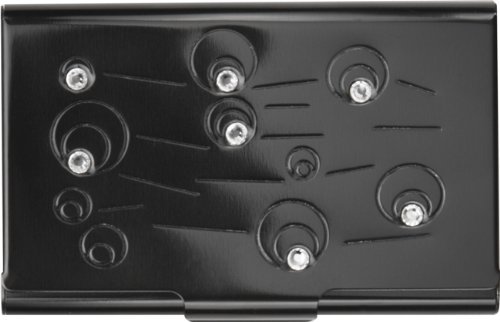#2412 Cleo Collection Black Circle Pattern with Bling By Wellspring Can be used for Gift Cards, Business Cards, Money, etc. Holds between 20 and 25 business cards. Approx: 3-3/4" x2-3/8"x3/8" Manufacturer's Description: This aluminum card case has multiple uses. It is RFID protective for ID and credit cards- use it as a wallet. It makes a perfect gift card (better than a greeting card!) holder, and can also hold business cards, loyalty cards, and hotel keys. And, it is perfect as a protective wallet that you can slip into a pocket for a night out- when a purse or bulky wallet will not do. FOR COMBINED SHIPPING: select the item you want click "Add to Cart" (Not “Buy it now”) Once you have all of the items you want in your cart, check out all at once for a combined shipping total. We ship FAST! Check our reviews! We provide tracking information at time item is shipped. We pack your items with care!