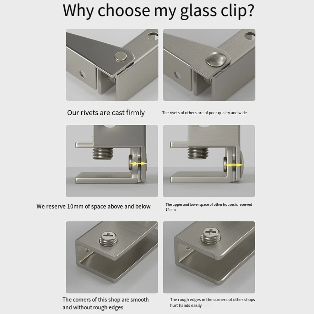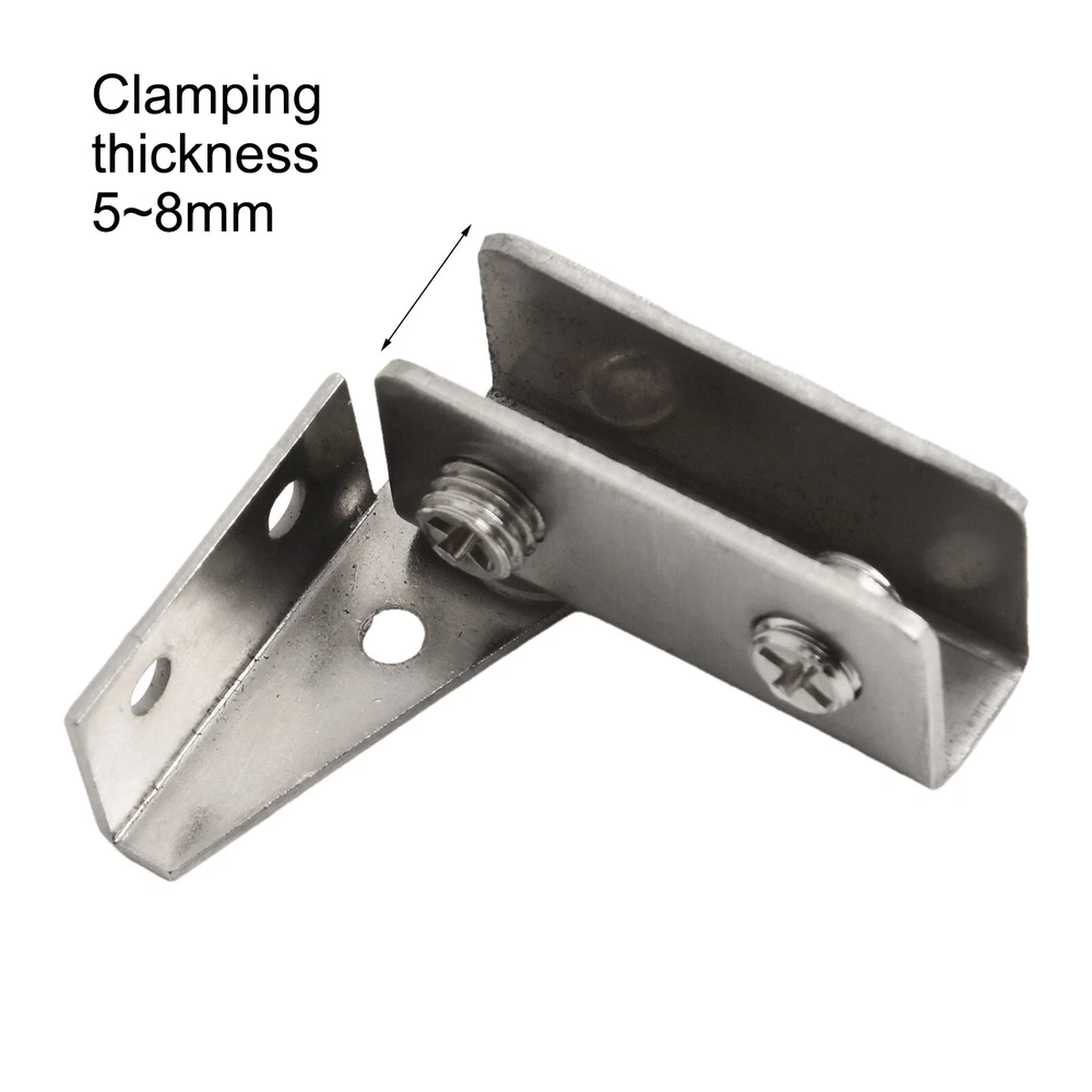 Sleek NonPorous Stainless Steel Hinges Two Pack Great for Various Applications DESCRIPTION Features: *Non-porous glass hinges: Made of high-quality stainless steel, these hinges are and reliable. *Smooth opening and closing: These hinges for ensure a seamless without any holes required in the glass. *Versatile application: Suitable for reinforcing and assembling glass in showcases, containers, fish tanks, etc. Can be used with glass glue. Adjustable screws make them suitable for most glass, ranging from 5-8mm thickness. *Secure installation: Install these hinges in your bathroom or kitchen to secure glass panels, glass shelves, and more. * construction: These hinges are made to last, providing a reliable solution for your glass door or cabinet needs. Specifications: *Product Name:Glass hinges *Material:Stainless steel *Size:43.5*40mm *Color:black,silver *Suitable glass thickn: about 5-8 mm Package Content: 2 x glass clips Note: . The real color of the item may be slightly different from the pictures shown on website caused by many factors such as brightness of your monitor and light brightness. 2. Please allow slight manual measurement deviation for the data. POLICES Shipping Payment WARRANTY We only ship to confirmed ebay Order addresses. Please comfirm that your Order address is in line with your shipping address. Please kindly note that the c ombined shipping is not provided because the shipping fee is calculated by weight. Also, the each additional item means exactly the the same color and size. It takes about 7 -15 working days to US; about 10-30 working days to other countries. Transit time may be a little delayed because of the bad weather and customs inspection . If you do not receive your item within 30 working days since payment finished, please contact us immediately for further assistance. Payment must be completed within 5 days. If you have any problems about payment, please contact us via ebay message. We strive for 100% customer satisfaction! Positive Feedback is very important to us. If you have any questions, p lease feel free to contact us via "Ask seller a question" . We will reply your email within 24 working hours.