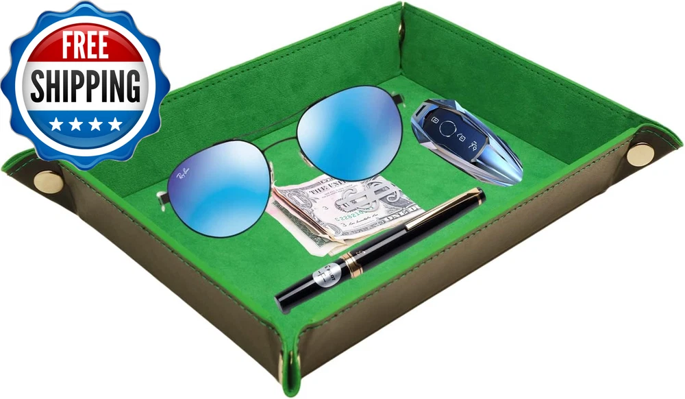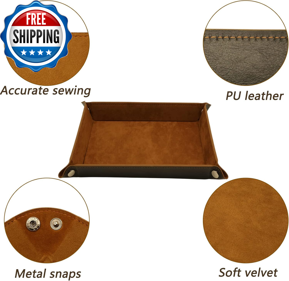 Valet Tray Organizer,Edc Tray,Catchall Tray for Jewelry,Wallets,Watches,Keys, Coins,Cell Phones,Glasses,Nightstand Tray Perfect for Nightstand,Entryway Table,Desk,Key Tray,Home Decor Product Description Feature Soft Velvet and PU Leather Exquisite Workmanship Foldable & Portable for Traveling Multi-Occasion Applicable Great Gift Idea Valet Tray Organizer Why choose this valet trays? Are you always looking for the little stuffs which easily lost? Do you want make your home or office more tidy? This valet tray organizer is your best home-organization helper it Perfect for neatly arranging your key, watch, jewelry, earplugs, cell phone, coins, cosmetics, makeup brushes, pens, glasses, buttons, beads, craft tools, seeds and other small items that are usually scattered everywhere. Place It Anywhere This exquisite desktop storage organizer sits handsomely on any nightstand, coffee table,office,entryway table, desk, dresser, countertop, bookshelf, or toilet top,The perfect solution for keeping your small items in place and perfectly organized. Soft PU leather Accurate sewing Soft PU leather Jewelry organizer Shipping Fast shipping is very important for us. Our standard US shipping service is FREE. Your order will be shipped within 2-3 business days upon full payment received. Your order will be delivered within 2-3 business days after the handling time. We only ship to the confirmed PayPal address. We reserve the right to cancel any order for any reason at any time. We are not responsible for undeliverable addresses. Returns and payment We offer a 30 days return policy from checkout winning date. We allow only PayPal as payment method FeedBack Your feedback very important to us, after you get your package and you are satisfied with our service please leave us positive feedback If you have any problem with your order / any questions please before leave any type of feedback For any questions, using eBay contact system Please visit our eBay store to check out other items for sale! Thank you for shopping at our store.