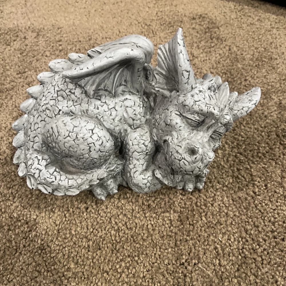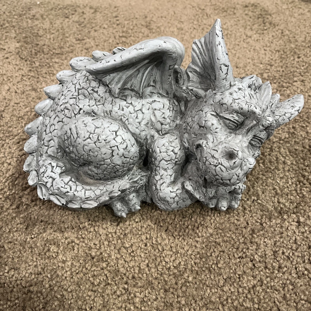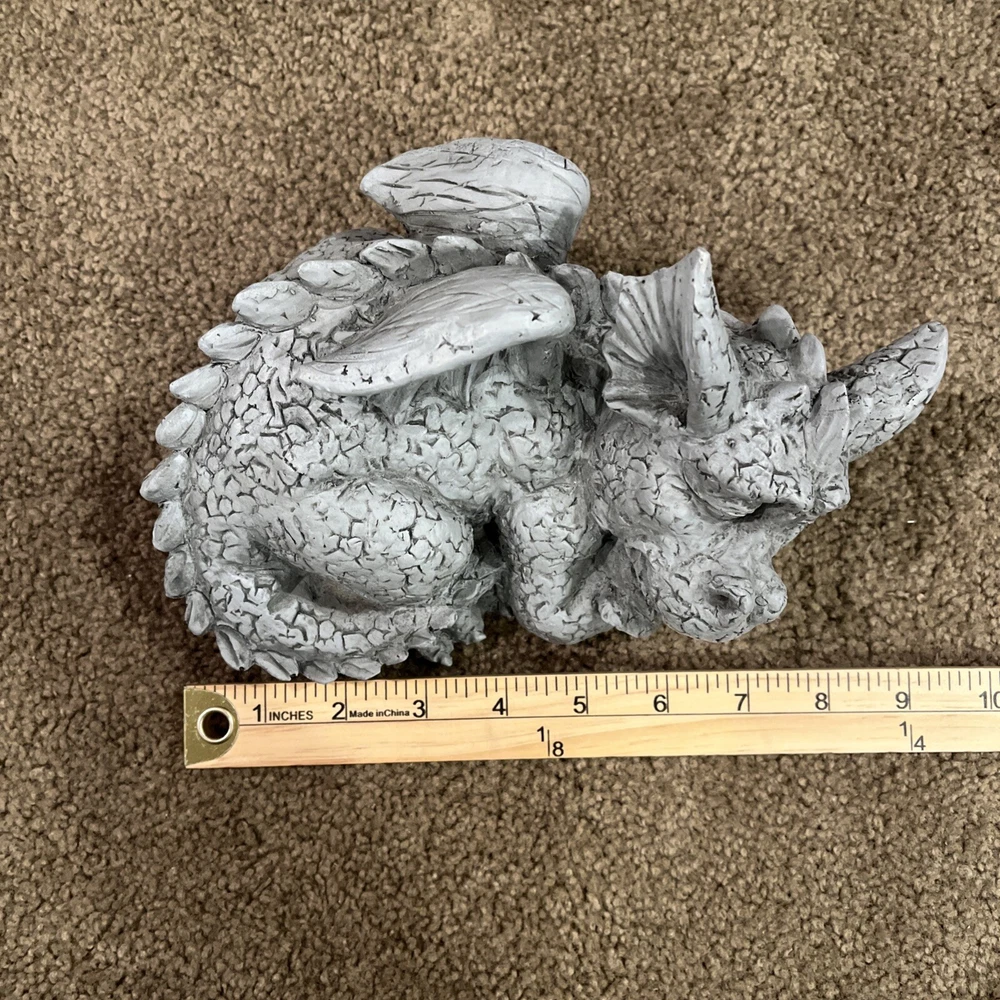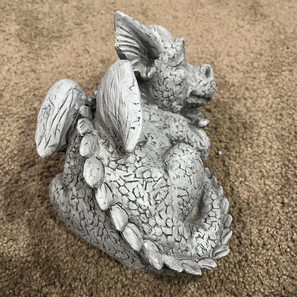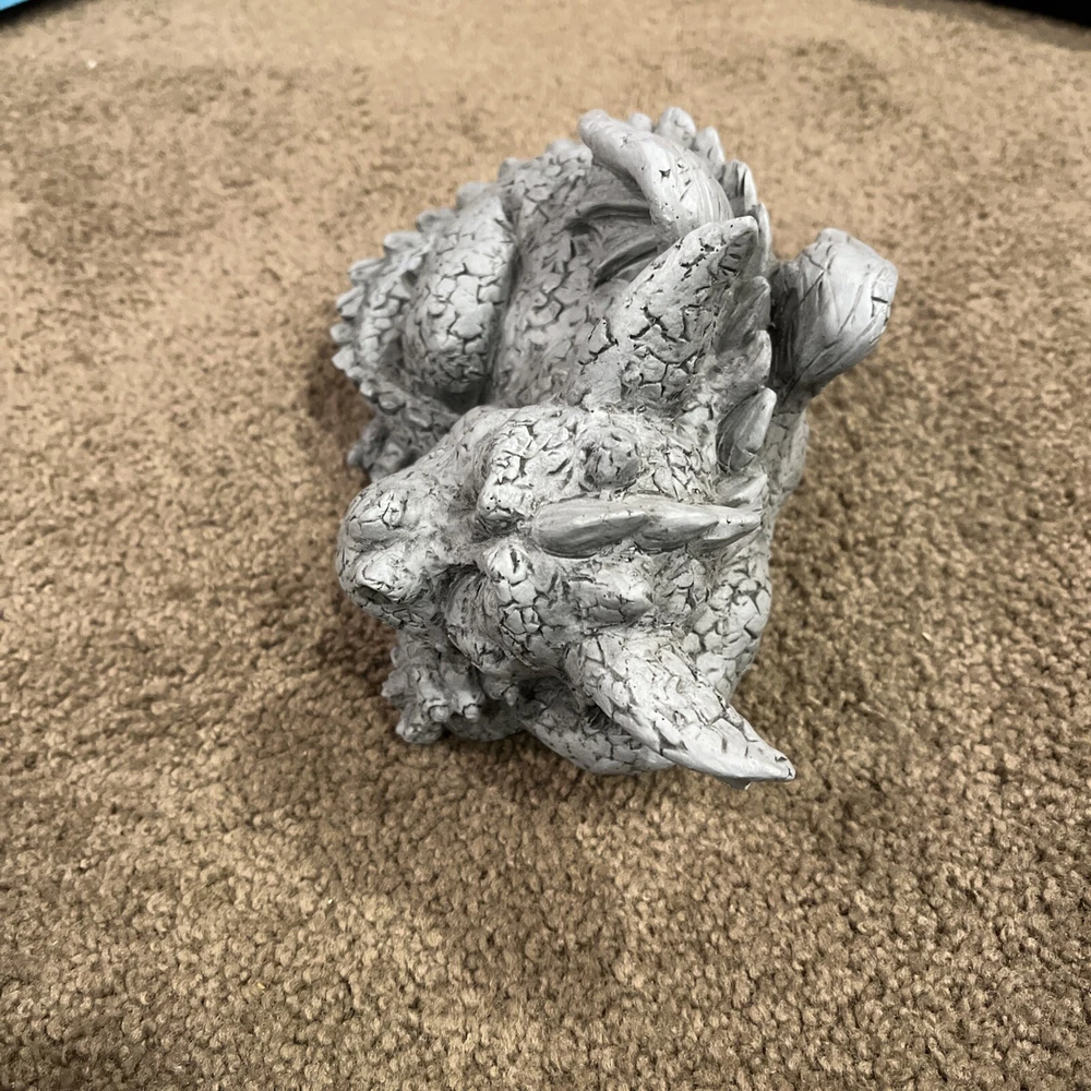 The Sleeping Baby Dragon Outdoor Statue is a medium-sized gray resin statue designed in the shape of a sleeping dragon, adding a touch of fantasy to any outdoor space like a porch, balcony, flower bed, or lawn. The modern-style statue features a textured finish and is suitable for both indoor and outdoor use, making it a versatile garden decoration. With easy care instructions, this mythical creature-themed statue brings a whimsical and enchanting element to your outdoor decor, perfect for dragon enthusiasts or those looking to add a unique touch to their living space.