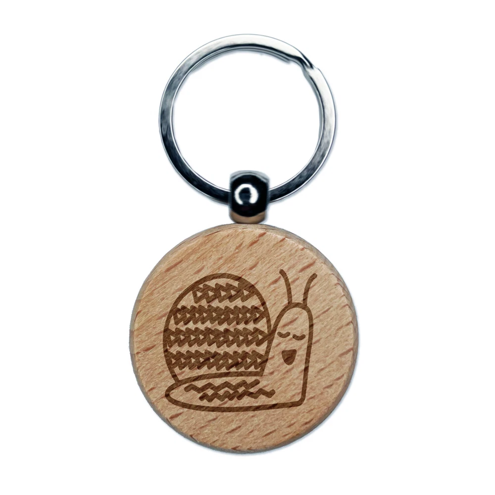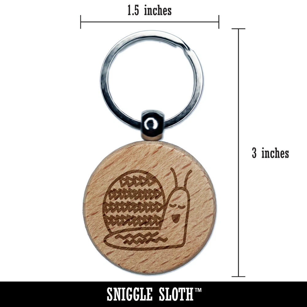 Sleepy Snail Engraved Wood Round Keychain Tag Charm