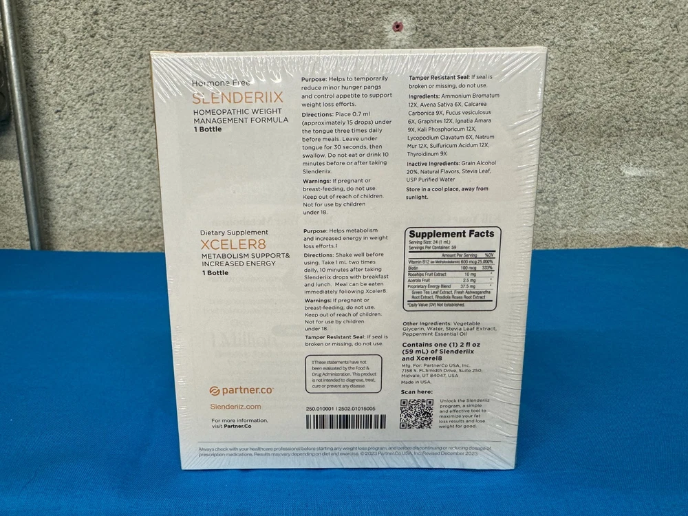 Formulation:DropsFlavor:NeutralCountry/Region of Manufacture:United StatesDepartment:UnisexExpiration Date:09/2026Volume:2 x 2 fl oz (59 mL) BottlesIngredients:Biotin, Vitamin B12Main Purpose:Weight ManagementWhen to Take:Before MealBrand:SlenderiizSupply:Up to 1 Month