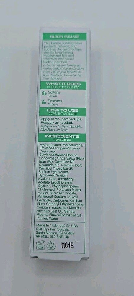 TOPICALS Slick Salve Mint Lip Balm Full Size .5oz/15ml Full Size NEW in Box.