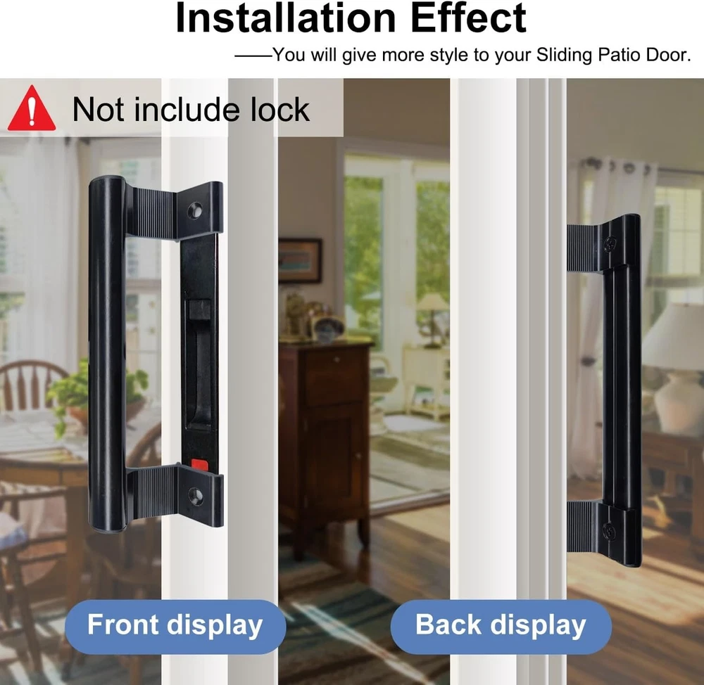 Sliding Door Handle 8" Aluminum Sliding Glass Door Pull - Sliding Patio Door Handles Fits 6-5/8 in Mounting Holes for Old or Damaged Door Pull - Perfect for Patio and Glass Doors (Black) 【High-Quality and Durable】The patio sliding door handle is made of high-quality aluminum alloy material, which is polished and sprayed for long-lasting durability and can withstand daily wear and tear. It can be used as a handle alone or together with a 7/8" wide door lock 【Easy Installation】Our sliding patio door handles comes with installation screws, with a screw installation distance of 6 5/8". Simply drill two holes on the door panel with an appropriately sized drill bit, then tighten the screws with a Phillips screwdriver or drill 【Comfortable Grip】young dance sliding door handle position is designed in an oval shape, which is ergonomically designed to provide customers with a comfortable grip, making it easier and more comfortable to open and close the sliding door 【Wide Applications】The sliding glass door handle is suitable for most decoration styles. Whether your decoration style is modern, minimalist, or elegant, it can add a touch of elegance and fashion to your home. Our handle can be used for various sliding doors, including closet doors, courtyard doors, and shower doors, making it a versatile and practical accessory for any home 【Stylish Design】The slide door handle has a brand-new, ergonomically designed shape that provides comfort and ease of grip for customers, making it easier to move the door. The simple and modern design of the sliding door handle adds a touch of elegance to any sliding door, making it an excellent addition to your home decor