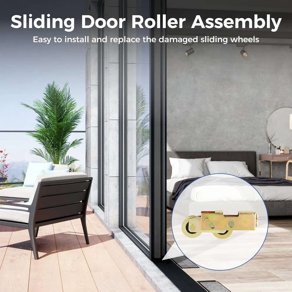 【Solid Construction】 Made of premium alloy steel with exquisite workmanship, the sliding door tandem roller is strong, heavy-duty, anti-rust, and corrosion-resistant, which can withstand loads up to 120kg/265lbs and is uneasy to rust or break even used in a humid environment. 【Standard Size】 The sliding door roller measures 1-1/4 inches in wheel diameter and 5/16 inches in wheel thickness(width), a suitable size to fit most sliding doors and widows. The roller will be a good choice for replacing a damaged roller to restore your sliding door to normal use. 【Easy to Install】 Quick and simple installation without extra tools. Just remove the damaged or missing tandem roller assemblies from your sliding door and install the new sliding wheels. Your sliding door will function again after the installation! 【Set of 2pcs Siding Door Rollers】 You will receive 2pcs sliding door tandem roller assemblies. They are of high quality with super smoothness on the bearing, and easy to slide without causing harsh noise. With the rollers, opening a sliding door will not be an effortful thing anymore! 【Widely Used】 Our sliding patio door wheels work well for sliding glass doors, screen doors, sliding gates, wood/extruded aluminum/vinyl patio doors, sliding windows, closets, wardrobes, and more. Reach out to us if you have any questions. We’re always there for you. Product Description