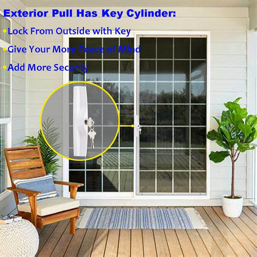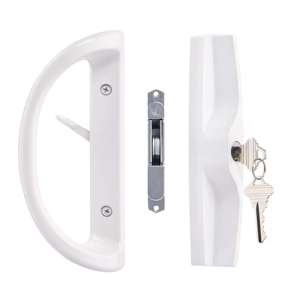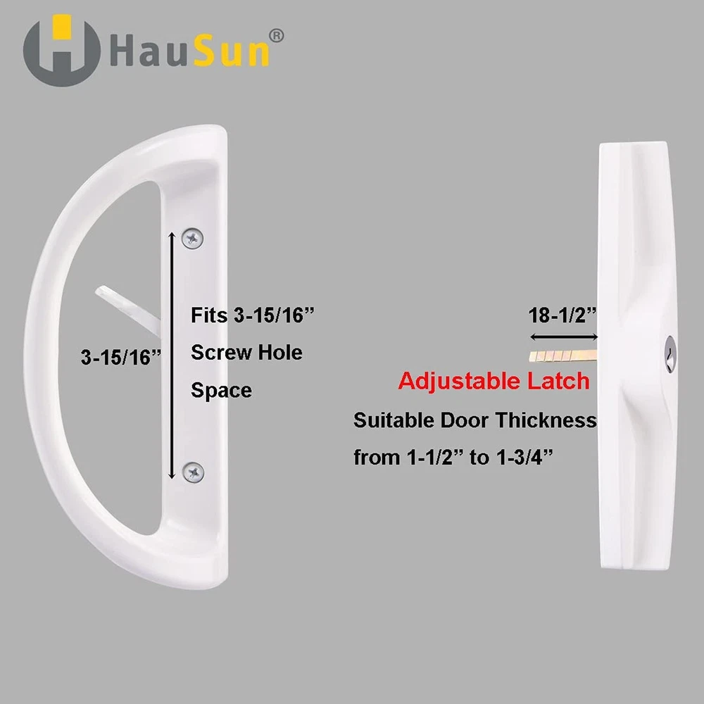 Sliding Patio Door Handle Set with Key Cylinder and Mortise Lock, Full Replacement Handle Lock Set Fits Door Thickness from 1-1/2" to 1-3/4", 3-15/16” Screw Hole Spacing, Reversible Design(Non-Handed) Product Details Color: White Brand: HauSun UPC: 631462731920 EAN: 0631462731920 MPN: Does not apply Material: Aluminum, Die-Cast Brand: HauSun Color: White Product Dimensions: 16"L x 15"W Exterior Finish: Aluminum Material: Aluminum, Die-Cast Brand: HauSun Color: White Product Dimensions: 16"L x 15"W Exterior Finish: Aluminum Specific Uses For Product: Entrance door, Sliding door Special Feature: Easy to Install Included Components: Screw, Latch, Key, Lock Lock Type: Key Lock Item Weight: 1.19 Pounds Center To Center Spacing: 3.88 Inches Handle Material: Aluminum Hand Orientation: Ambidextrous Projection Distance: 1.5 Inches Unit Count: 1 Count Number of Items: 1 Manufacturer: Wintek UPC: 631462731920 Item Weight: 1.19 pounds Finish: Powder Coated Item Package Quantity: 1 Number Of Pieces: 1 Special Features: Easy to Install Batteries Included?: No Batteries Required?: No Date First Available: July 11, 2021 COST EFFECTIVE TO REPLACE OLD OR BROKEN DOOR HANDLES: When your door handle is broken, old or unsightly, dont replace the door entirely, just get a new sliding patio door handle set! Our whole set replacement patio door handle + mortise patio door / sliding door lock with key is the most economical and useful you can find. INCLUDES: Interior Handle, Exterior Pull with Key Cylinder,Mortise lock, Thumb Latch, 6XScrews. Standard reversible, non-handed handle set that can be mounted on both left-handed and right-handed sliding patio doors. 45 Mortise latch lock which can be used on sliding patio doors constructed of wood, aluminum and vinyl.The Exterior Pull has key cylinder in it and you can lock the door from outside.You don't need to buy other components if you get our handle set. EASY INSTALLATION:This is a DIY project in the box. For handles with 3-15/16 hole spacing & a Mortise (Latching style) lock. Remove 2 screws from existing handles, insert Latch, align inside and outside handles with Pre-drilled door holes, insert screws, tighten and your done. Includes 6 screws with 3 different sizes: Large 2.16", Medium 1.96", Small 1.57" KEYED:The exterior die-cast pull comes with keyed cylinder. This handle is CONVERTIBLE WITH KEY FUNCTION.Most other handles don't include key function.You can lock from your outside yard to give a much safety and peace mind to your home. REVERSIBLE DOOR HANDLE & MORTISE LOCK:Also known as "Non-Handed. Our handle is designed for Right or Left-Handed or the door that opens from the left or the right, YOUR CHOICE! Comes with sliding door latch replacement.