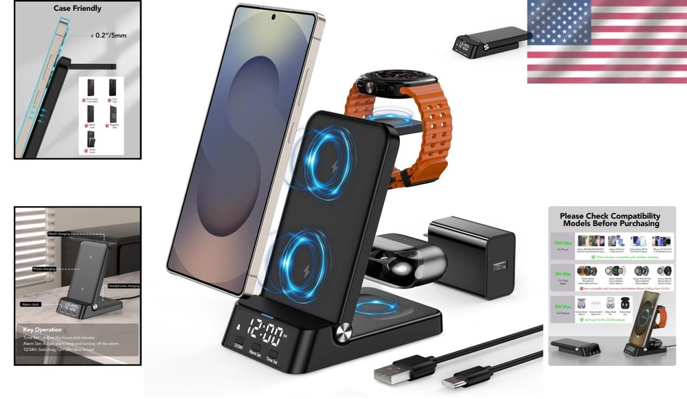 Elegant Wireless Charger with Digital Clock - 4-in-1 for Samsung Galaxy Series ‹ › ‹ › ‹ › ‹ › ‹ › ‹ › ‹ › ‹ › ‹ › Elegant Wireless Charger with Digital Clock - 4-in-1 Wireless Charger Compatible for Samsung Galaxy Series Features: Compatibility: Designed specifically for Samsung Galaxy Phones including S25/Edge/Ultra and Note 20, among others; Galaxy Watch 8 series; and Galaxy Buds 3/2. 12/24 Hour Digital Clock: Equipped with an LED digital clock for time management, featuring a convenient alarm function. Safe and Fast Charging: Intelligent protection technology ensures your devices are charged swiftly and securely, with features such as temperature control, over-voltage protection, and short-circuit protection. Travel-Friendly: Its foldable 4-in-1 design makes it an ideal travel companion, fitting seamlessly into your bag without taking up space. Comprehensive Package: Includes 4 in 1 Wireless Charging Stand, Type-C Power Cable, Charging Adapter, and User Guide. One-Year Friendly After-Sales Service: Offers peace of mind with potential replacements or refunds in case of quality issues. Benefits: Streamline your charging routine with the all-in-one design. Stay on schedule with the integrated digital clock and alarm. Safeguard your devices from potential hazards while charging. Perfect for home or travel - convenience without compromise. Enjoy a sense of security with our one-year after-sales support. Why Select Our Elegant Wireless Charger? Embrace the luxury of seamless charging with our Elegant Wireless Charger featuring a built-in digital clock. It not only provides a sophisticated solution for all your Samsung devices but also serves as a stylish accessory for any modern home or travel setup. With safety technologies ensuring the protection of your cherished devices and the convenience of a portable design, this charger is the epitome of elegance and functionality. Don’t settle for ordinary. Elevate your charging experience and enjoy the convenience it brings - order your Elegant Wireless Charger today! Shipping Free & Fast Shipping - We offer free shipping to most of the USA with a normal delivery time of 3-10 businessdays. However, due to various situations, additional delivery time (up to 3 weeks) may be required for some items. Alternative Carriers - We may use alternative carriers (e.g. USPS, FedEx, UPS, etc.) to ensure your package arrives safely and on time. Due to the use of multiple carriers, we are unable to provide a tracking number automatically. Handling Time - Orders are processed and shipped within 1-5 business days of receiving cleared payment. Shipping Restrictions - Shipping to Alaska, Hawaii, Puerto Rico, Guam, and other US territories may incur shipping charges or delivery restrictions. Please contact us before ordering, or your order can be refunded/cancelled. State Restrictions - There may be restrictions based on your state of purchase. For example, certain items may not be shipped to California due to state regulations. Contact for Tracking Updates - If you require tracking updates or have any concerns about the delivery of your order, please feel free to contact us, and we will be happy to assist you. Return Please see our ebay return policy. We do not accept return on most products. This is to avoid customers mis-using ebay returns. All sales are final. Please be sure to check the return policy listed at the top of the listing. In rare cases, we may accept returns, if the buyer pays both ways shipping and 20% restocking fee. If you are un-sure of return policy of a particular item, please ask before buying. Payment We accept all major credit cards, PayPal, and Apple Pay for your convenience. Your payment information is secure and encrypted to ensure a safe and seamless transaction. Please complete your payment within 3 days of purchase to avoid any delays in shipping. Feedback Your feedback is extremely important to us. We strive to provide the best products and customer service possible. If you are satisfied with your purchase, please take a moment to leave us a positive review. If you have any concerns or issues with your order, please contact us before leaving negative feedback. We are committed to resolving any problems and ensuring your satisfaction. Contact Us If you have any questions or concerns, please feel free to reach out to our customer support team. You can contact us through the eBay messaging system. We are available Monday to Friday, 9:00 am to 5:00 pm EST, and we will do our best to respond to your inquiry within 24 hours. Buy it now and enjoy a pleasant shopping experience! UPC: Not Set Item Length: Not Set Product Line: Not Set Unit Quantity: 1 Features: Alarm,Wireless Charging,Alarm Clock,Digital Clock,LED Charging Indicator,Foldable Design,Fast Charging,12/24 Hour Display,Portable,Compact Design Theme: Not Set Room: Bedroom,Home Office/Study,Kitchen,Living Room,Utility/Laundry Room Material: Plastic Character: Not Set Smart Home Protocol: Not Set Smart Home Compatibility: Not Set Brand: Unbranded Type: Wireless Charger Display Type: Digital Color: Black Movement: Not Set Power Source: Electrical Style: Not Set Finish: Not Set Character Family: Not Set Era: Not Set MPN: Not Set Model: Not Set Frame Material: Not Set Shape: Not Set Manufacturer Warranty: Not Set Protection Plan: No Coverage Item Height: Not Set Item Weight: Less Than 1 lb Item Width: Not Set Number Type: Not Set Original/Reproduction: Not Set Engraved: Not Set