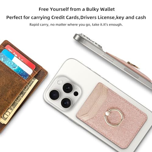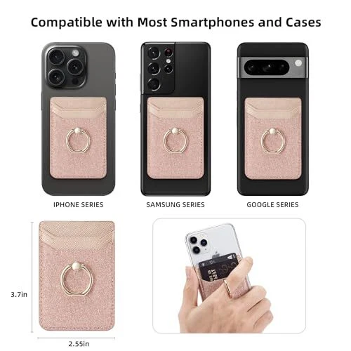Return Policy Fast Delivery Trusted seller Credit Card Holder for Phone Case,Adhesive RFID Sticky wallet Attachment for Phone Case with Finger Ring Stand Stick on Most SmartPhone for iPhone&Galaxy&Google,Vegan Leather-Shinny Pink Product Description Premium Vegan Leather offer luxurious appearance-This Credit Card Cell Phone Wallet is made of high quality vegan leather,Durable,sturdy,anti-slip and more elegant than traditional cloth and silicone material. Strong Sticky: With powerful and sticky 3M adhesive, durable and strong adsorption ability.Offer a firm, long-lasting hold.It won't lose strength due to pocket heat, light moisture or sweat.Easy to stick on your phone or phone case securely,you never worry about losing your valuable items, RFID secure design-This adhesive credit card wallets are equipped with advanced RFID secure technology. With build-in RFID-blocking material in front and back cover. Give your cards, valuable data and identity FULL protect not being stolen by electronic pick pockets or hackers. Compact Design Credit Card Holder:Slim enough that you can get your phone into a pocket, large enough to securely hold up 3 cards. solution to a bulky wallet.ideal way to keep cards at hand that are needed, Pocket are tight enough that you will never worry about cards or cash falling out.but convenient to put it out when you need. 360 swivel ring on back : you can put your finger through this ring and have more stability and comfortable when you’re holding your phone,and no worry about sag or pulled at the cards. It also helps to prop your phone up in a slew of different ways, great for standing up the phone when taking pictures with the timer also watching video. Shipping Returns Payment Shipping Shipping is FREE to all addresses other than APO/PO boxes in the lower 48 states. All our stock ships from US-based warehouses. Shipped via USPS or UPS (depending on location and package weight) Unless stated otherwise, all orders will ship within 24-72 hours of your payment being processed. Check our feedback to see the great reviews of FAST shipping we offer. Returns Seller does not accept returns Payment We currently accept payment via eBay managed payments only. Once payment is cleared, we will dispatch your shipment within 1-3 business days. Please refer to the "Shipping" tab for more information regarding shipping speed to your destination.