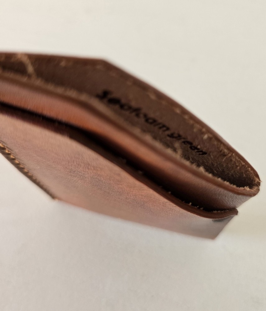 This minimalist credit card holder is perfect for the man who wants both style and functionality. Crafted from high-quality brown leather, this card holder features a rugged accent that adds a touch of nature to his wardrobe. The holder is perfect for carrying credit cards and other essentials, making it a versatile addition to any outfit. The Running Horse brand is known for its high-quality leather products, and this card holder is no exception. The slim design makes it easy to carry in his pocket, while the solid pattern and vintage American theme add a touch of personality. Handmade in India, this card holder is a must-have for any man who wants a stylish and practical accessory.