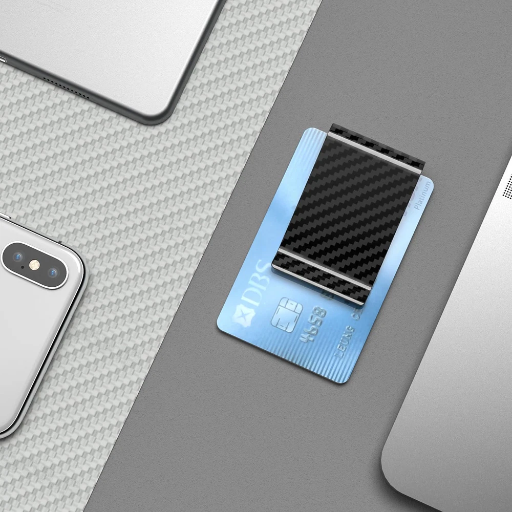 Carbon Fiber: The money clip is made of 100% carbon fiber material, making it sturdy and durable with a stylish appearance. It won't bend from long-term use and has a long service life Innovative and Stylish Design: The unique carbon fiber pattern features a high-quality texture that is both comfortable to the touch and visually appealing Slim Size with Big Storage: This money clip holds 1 to 50 bills or 1 to 15 cards for your everyday carry. It can be placed in a pocket, making it easier to carry cash than a wallet Excellent Durability: Super strong and lightweight, the clip springs back to its original shape after money or cards are removed Peace of Mind Service: always strives to provide high-quality products to our customers. We offer prompt responses and satisfying services to ensure your peace of mind