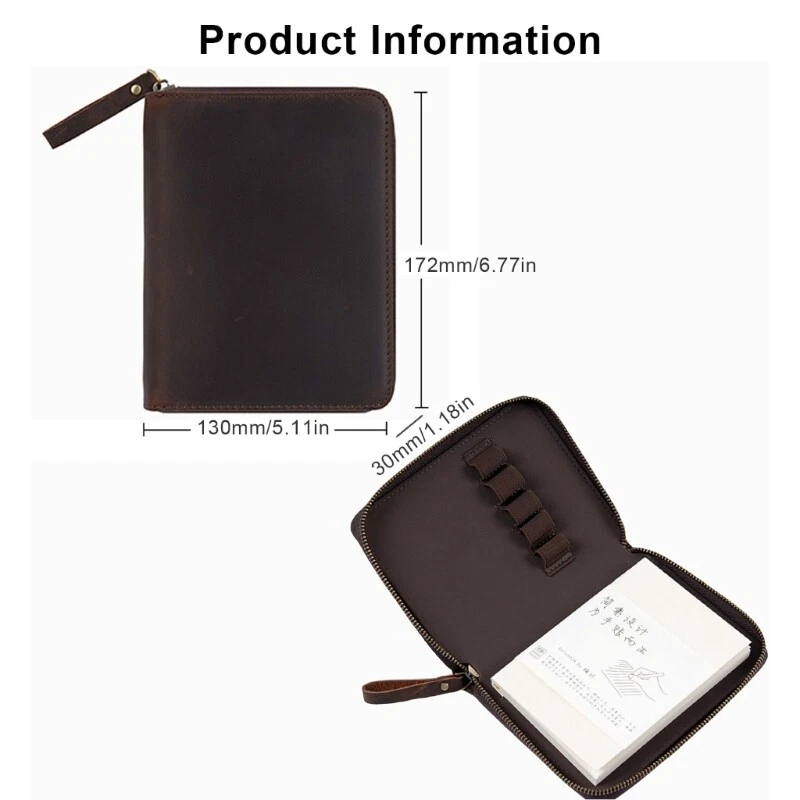 Features: Field Notes leather cover is crafted from leather, wear resistant, protect your pocket journal, small notebook from dirt, wet and scratches. Our handmade leather cover suit for 3.5x5.5Inches Field Notebook, Pocket Notebook, Small Notepads, Small Journal. Zippered Leather Cover with pen slot, easily hold 5 different fountain pen, ballpoint pen, touching screen, pencil. This leather cover could also be used as small purse, wallet and travel cash and card holders. Thoughtful anniversary, birthday or graduation present for friend and family, or anyone who loves writing, reading, writer, journalist and alike. Only Leather cover, notebook not included. Specifications: Component: Leather Color: Black; Coffee; Brown; Green; Wine Redness; Blue Size: Approx. 13x17.2cm/5.1x6.77in Weight: Approx. 190g Package Includes: 1Piece Zippered Leather Notebook Cover note: 1.Please allow 0-1cm error due to manual measurement. Be sure you donot mind before bid. 2.Due to difference between different monitors, the picture may not reflect the actual color