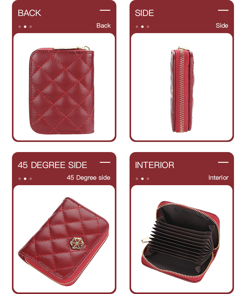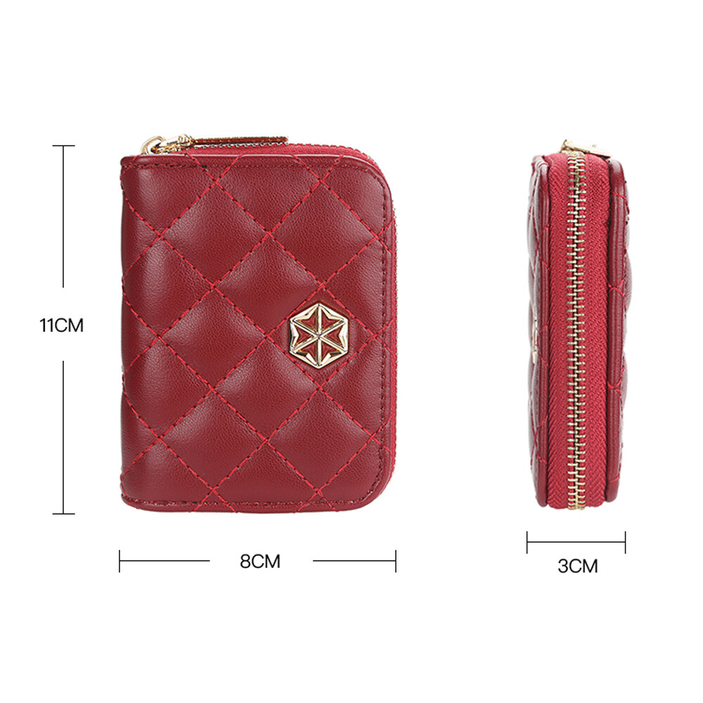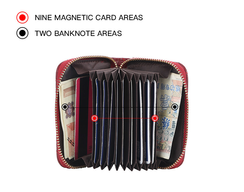 This wallet for women.It is made of leather,offers style and storage for all of your most important items. This wallet open to reveal 9 card slots to hold all of your most important credit cards, debit cards, rewards cards, and insurance cards.Zip around pocket to hold your coins,cash and key.This wallet with advanced RDIF blocking technology, it keep your identity protected while you travel, shop or explore. Material: Leather Color: As picture shown Size: approx. 11*8cm Weight: approx 97g Package included: 1 X Women Wallet