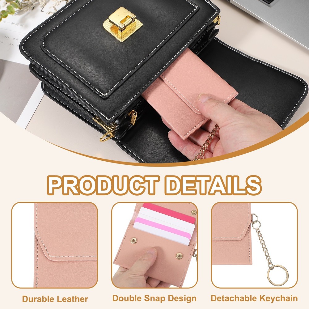 Document Description:Leather Material: This slim wallet is made of durable PU leather, soft to the touch, durable, elegant and wear-resistant.Slim & Portable: This card organizer features a slim profile that fits comfortably in pockets, purses, or small bags. The structured yet flexible construction remains lightweight while ensuring card capacity. Whether for daily use or traveling, it is a good choice for storing important cards.Dual Snap And Keychain Design: This slim wallet features a dual snap design to ensure secure storage while providing quick access to essentials like driver's license, ID, credit, and bank cards. It also comes with a detachable keychain that can be easily attached to a handbag, belt, or used alone. Meaningful Gift: This leather wallet is suitable for parties, shopping, travel, and many other occasions, and can meet almost all your storage needs. It is also a practical and thoughtful gift for friends, family, and lovers.Specification:Package Content: 1 x Card HolderColor: PinkMaterial: Leather, MetalSize: 4.33"x 3.15"x 0.20"/11 x 8 x 0.5cm(L*W*H) Leather Credit Card Holder, Slim Pocket Wallet with Detachable Keychain, Pink Description: Leather Material: This slim wallet is made of durable PU leather, soft to the touch, durable, elegant and wear-resistant. Slim & Portable: This card organizer features a slim profile that fits comfortably in pockets, purses, or small bags. The structured yet flexible construction remains lightweight while ensuring card capacity. Whether for daily use or traveling, it is a good choice for storing important cards. Dual Snap And Keychain Design: This slim wallet features a dual snap design to ensure secure storage while providing quick access to essentials like driver's license, ID, credit, and bank cards. It also comes with a detachable keychain that can be easily attached to a handbag, belt, or used alone. Meaningful Gift: This leather wallet is suitable for parties, shopping, travel, and many other occasions, and can meet almost all your storage needs. It is also a practical and thoughtful gift for friends, family, and lovers. Specification: Package Content: 1 x Card Holder Color: Pink Material: Leather, Metal Size: 4.33"x 3.15"x 0.20"/11 x 8 x 0.5cm(L*W*H) Hot Item Payment We accept eBay payment. Please do not email us to ask for other payment option. We appreciate prompt payment and look forward to your business in the future. Unpaid item will be filed without receiving payment in 7 days from listing ended. Shipping Usually we ship your order out within 24 hours in business day. For shipping and handling charges (S&H) for specific item, please refer to the item listing page for more details. Please make sure your shipping address is correct. We are not responsible for any loss in transit if a wrong address is provided. Return Policy Returns for exchange are permitted and must be initiated by the buyer within 30 days upon receipt. If you would like to return your product(s) for repair / replacement / refund, please kindly contact our customer service representatives via email for an authorized RMA number. Your returned product(s) will not be processed without a completed RMA. About Us We are continually expanding our product selection to better serve your need. We look forward to providing the best sevice to you - our dear customers, so take a look around our store and find the product that you want. You can put your trust in us! If you need any help or have any suggestions, please don't hesititate to contact us anytime , we will reply you within 24 hours and try the best to help you. Description Policy Leather Credit Card Holder, Slim Pocket Wallet with Detachable Keychain, Pink Description: Leather Material: This slim wallet is made of durable PU leather, soft to the touch, durable, elegant and wear-resistant. Slim & Portable: This card organizer features a slim profile that fits comfortably in pockets, purses, or small bags. The structured yet flexible construction remains lightweight while ensuring card capacity. Whether for daily use or traveling, it is a good choice for storing important cards. Dual Snap And Keychain Design: This slim wallet features a dual snap design to ensure secure storage while providing quick access to essentials like driver's license, ID, credit, and bank cards. It also comes with a detachable keychain that can be easily attached to a handbag, belt, or used alone. Meaningful Gift: This leather wallet is suitable for parties, shopping, travel, and many other occasions, and can meet almost all your storage needs. It is also a practical and thoughtful gift for friends, family, and lovers. Specification: Package Content: 1 x Card Holder Color: Pink Material: Leather, Metal Size: 4.33"x 3.15"x 0.20"/11 x 8 x 0.5cm(L*W*H) Hot Item Payment We accept eBay payment. Please do not email us to ask for other payment option. We appreciate prompt payment and look forward to your business in the future. Unpaid item will be filed without receiving payment in 7 days from listing ended. Shipping Usually we ship your order out within 24 hours in business day. For shipping and handling charges (S&H) for specific item, please refer to the item listing page for more details. Please make sure your shipping address is correct. We are not responsible for any loss in transit if a wrong address is provided. Return Policy Returns for exchange are permitted and must be initiated by the buyer within 30 days upon receipt. If you would like to return your product(s) for repair / replacement / refund, please kindly contact our customer service representatives via email for an authorized RMA number. Your returned product(s) will not be processed without a completed RMA. About Us We are continually expanding our product selection to better serve your need. We look forward to providing the best sevice to you - our dear customers, so take a look around our store and find the product that you want. You can put your trust in us! If you need