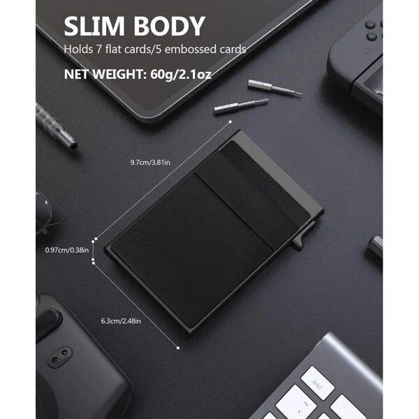 Details 1. Slim and Minimalist Design Our Credit Card Holder is designed with a slim and minimalist profile, making it easy to carry in your pocket without adding bulk. It's the perfect choice for men who prefer a sleek and stylish wallet. 2. Money Pocket In addition to holding up to 5 cards, this wallet also features a money pocket, allowing you to keep your cash and cards organized in one place. 3. Pop Up Feature The pop up design makes it easy to access your cards quickly and conveniently. With a simple push, your cards will spring up for easy selection. 4. RFID Blocking Protect your personal information from RFID skimming with our built-in RFID blocking technology. Keep your cards and identity safe from electronic theft. 5. High-Quality Materials Crafted from high-quality materials, this credit card holder is built to last. It's durable, stylish, and will provide you with years of reliable use.