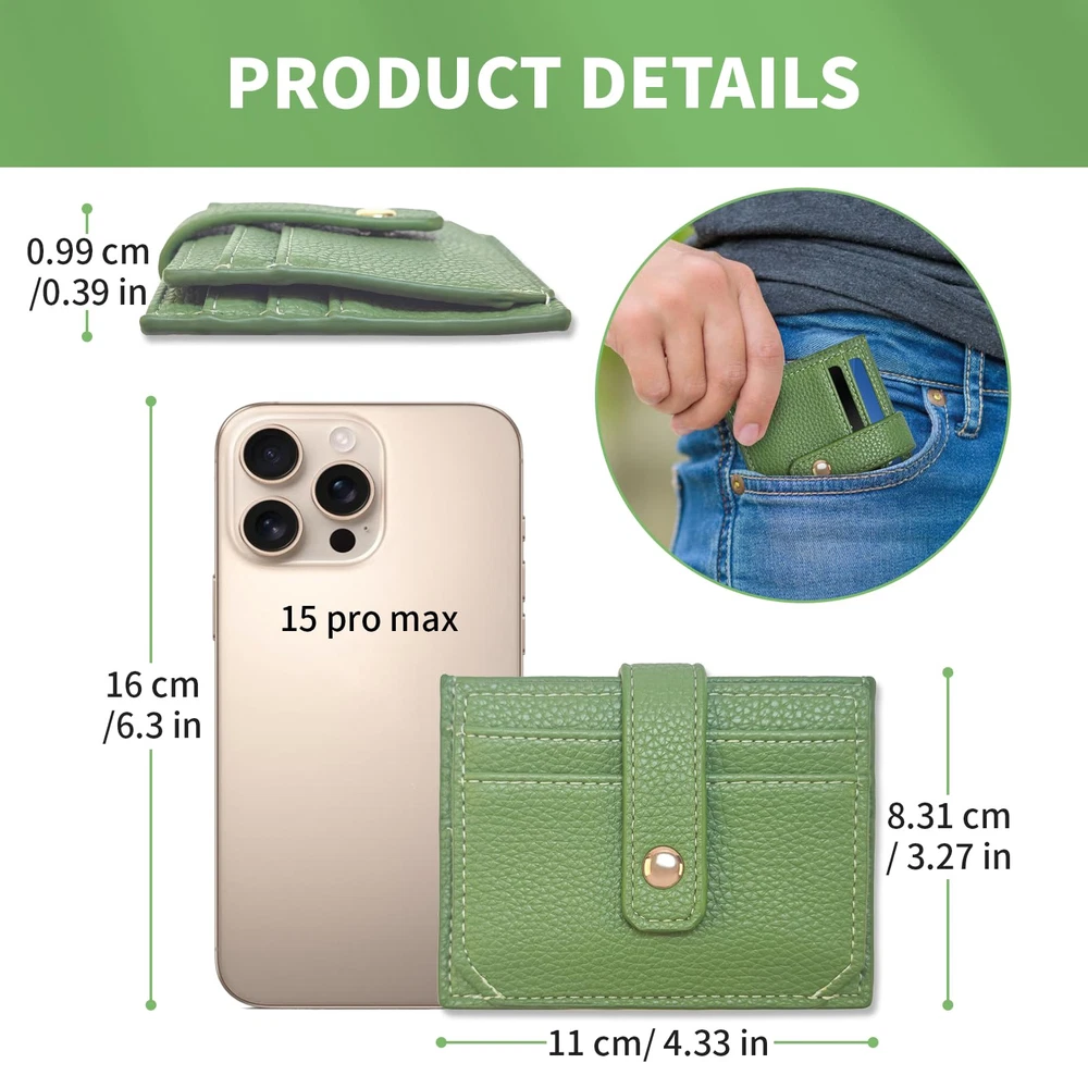 This slim credit card holder is a game-changer! The compact size fits perfectly in small bags or pockets without adding bulk, yet it holds all my essentials. The premium leather feels luxurious, and the RFID blocking gives me peace of mind. Super lightweight and stylish—perfect for everyday use!
