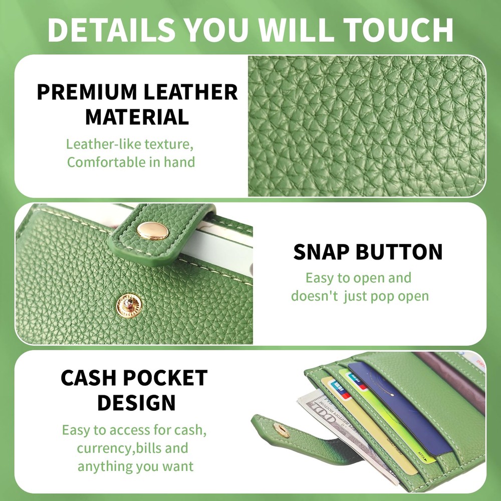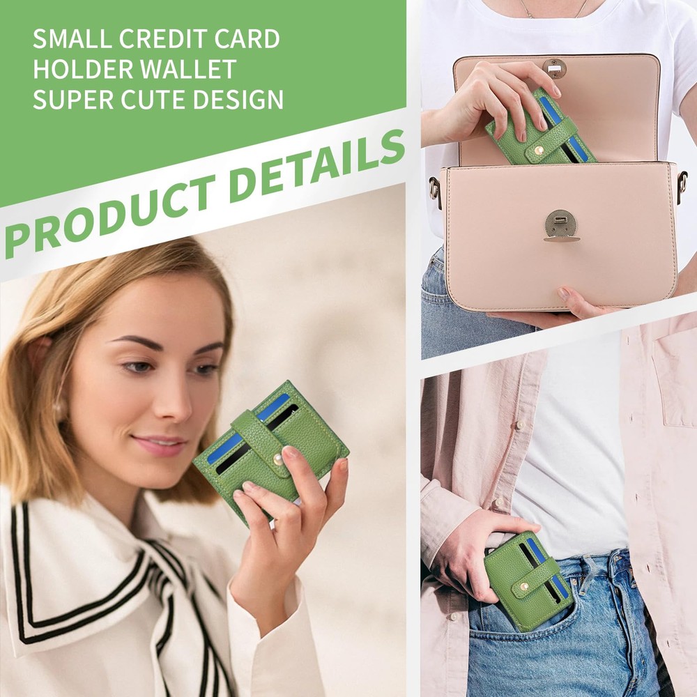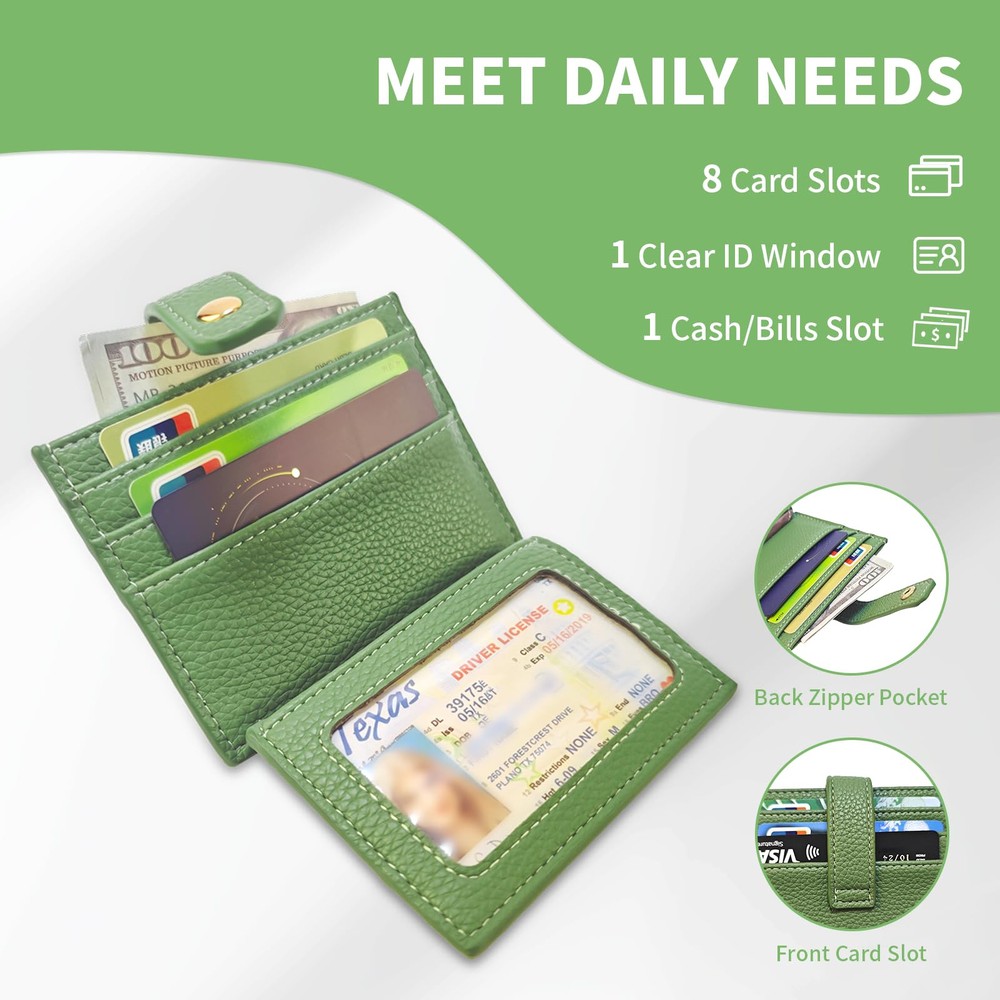 SLIM & SMALL WALLET - The small leather wallet women size is 4.33'' x 3.27'' x 0.39'' inches, net weight 0.09 lbs. This womens wallet is designed with compact, convenient and practical design, it will not look bulky even when filled with cards and cash. Small thin wallets woman very handy and easy to carry, whether hold it on hand or put it in your bag. RFID wallet women is great fits in your handbag, backpack, crossbody bags, jacket pockets, front pockets, etc. PREMIUM SOFT LEATHER - The bifold credit card holder wallet is crafted from high-quality PU leather, offering a leather-like texture, comfortable to touch. Its high-quality material make it ideal for daily use, with the appearance becoming increasingly refined over time. COMPACT & LARGE CAPACITY - Women's wallets comes with 8 credit card slots, 1 ID/driver license/photo window, 1 currency/bills/receipts pocket. Roomy enough for fitting plenty of cards, cash and some bills, keep them well organized. The slim mint card wallet's is easy to get your cards in and out. RFID BLOCKING WALLET - The RFID cute wallet for women are equipped with advanced RFID blocking technology. This slim wallet for women are enhanced with a protective layer to block RFID chip signals. This mini wallet can help keep your personal information safe from criminals who use scanners to access and copy ID and bank card details when traveling, shopping or walking the dog. SPECIAL GIFT - This small womens wallet is perfect as a wonderful gift for Christmas, Valentine's Day, birthdays, anniversaries, Mother's Day, Thanksgiving, New Year and other special moments. leather wallet makes a practical and thoughtful present for mom, mother, grandma, grandmother, wife, girlfriend, sister, friends, family and colleagues.