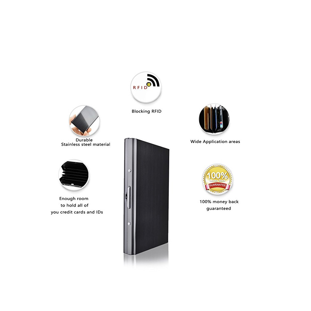 ☞ PROTECT YOUR CARDS: This credit card holder use RFID Blocking Technology to keep your cards are safe from identity thieves who are walking around attempting to scan your information from your cards. You can put your credit cards in here and they are protected from damage. ☞ THE MATERIAL: This card metal wallet made of high-quality stainless steel which makes it more durable and use time longer than plastic and a leather one. Very sturdy, resists wear, not easy to bend deformation. Keeps everything dry and safe in your pocket and bag. ☞ THE FITS: The metal wallet size is 3.9* 2.6 * 0.6 inches, very slim, fit for the credit cards, with compact folding accordion holders that make the cards not easy to fall off. The 6 cards capacity to meet the daily needs of carrying your usual cards. ☞ ONE HAND USE: This slim card holder can use one hand to open and close. When you press the button, the card holder springs right open and it snaps shut tightly. It opens easily and is small enough to fit easily into any pocket. This is the ideal way to carry your cards with you Package content: 1x Metal wallet holder Payment 1. We only accept PayPal at this time. 2.PayPal transactions are free for buyers. 3.Your payment is traceable and sellers do not have access to your credit card number or other financial data. Delivery details We offer FREE Standard shipping on all orders in the United States! Your order will be dispatched within 1 business/working day of receiving payment (Monday-Friday). If you have any problem or issue with your order at any time,please contact us first before you contact eBay,and benefit from our response. We will make every effort to have your items shipped as quickly as possible,and to meet or beat the time estimates above.Please remember that the times above are not only shipping estimates,and are not guarantees. Once your items have shipped out,we will update eBay with the tracking information as quickly as possible.eBay should send you an email with the shipment information,and the information will also be available on your eBay purchase history. Return Policy Dear buyer, All products have been checked and packaged in good condition before dispatch.In case the item is defective,please inform us with 7 days of receipt,we will replace a new one or full refund.If you are not happy with the received item,please contact us before leaving any feedback.We will try our best to assist you.Return shipping will be paid by the buyer if you buy wrong item by your mistake,and $3 restocking fee will be charged by each of the item. Contact us Our goal is to provide you with excellent products and service! We strive to satisfy our customers,as you can see by our excellent eBay feedback.If you have any questions or concerns about order,please contact us immediately so that we may resolve the issue as quickly as possible. If you have any questions or concerns please feel free to message or email.Our staff is happy to assist you in any way possible.Our office is open Monday through Friday.