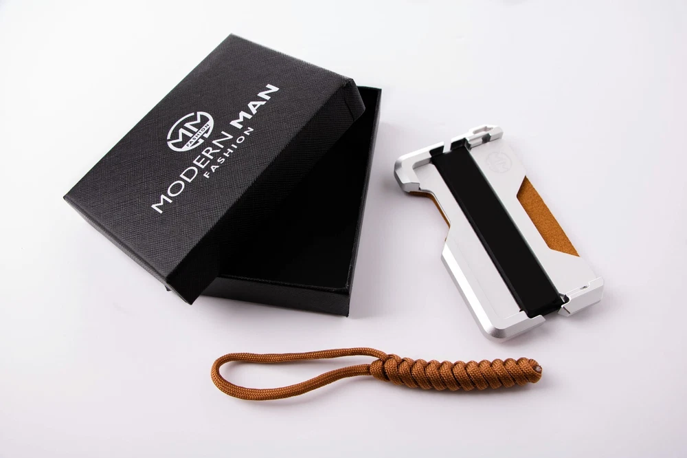 MINIMALIST MODERN WALLET FOR MEN - FORGET THE TRADITIONAL WALLET MODERN MAN wallets are the result of exceptional design and exceptional functionality. Our highly qualified employees check every detail to ensure that we continue to meet the highest quality standards while maintaining the MODERN MAN brand philosophy. MODERN, ULTRALIGHT WITH RFID PROTECTION Do you prefer to pay cashless, so you always have lots of cards with you? If so, the Modern Man brand presents a NOVELTY ON THE POLISH MARKET - A MINIMALIST WALLET, CARD HOLDER!!! Despite its small size, the wallet is very spacious and practical. Easily holds your most important cards, cash and even coins! ✅ Proximity Card Protection - Cards placed in the case are protected from unauthorized reading of data. ✅ HIGH-QUALITY WORKMANSHIP - Wallet made of aluminum leather with an elastic band for cards. ✅ SET - The set includes a case, a cord/pendant and packaging. ✅ SPACIOUS - The wallet can hold 8-10 cards (depending on the type of cards inserted, i.e. the number of flat and convex cards). ✅ STANDARD SIZE - 6.5 x 11 x 1.3 cm (width x height x thickness). ✅ SKIN COLOR: Brown, Black, Red (to choose from) ORGANIZER FOR PAYMENT CARDS AND CASH Anti-theft card holder made of aluminum and leather for modern and demanding users. The cards in the case are held in place with a rubber band, which prevents them from falling out. There is a leather pocket on the back of the case, perfect for inserting banknotes. The set comes with a brown cord that can be used as a pendant. IDEAL FOR A GIFT The wallet was packaged in an elegant black box, perfect as a gift! The elegant and modern design of the wallet makes it a fashionable addition to your business look!