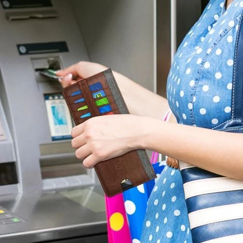 Politica di ritorno Consegna veloce Venditore di fiducia Slim Credit Card Wallet Holder Change Pouch, RFID Blocking Business Cards Cases with Zipper Pocket for Cash, Coin, Receipt, ID Card Descrizione del prodotto 【Sleek and Compact Design】This premium RFID blocking wallet features a slim and compact design, making it easy to carry in your pocket or bag without adding unnecessary bulk. 【Secure Storage Options】With a zipper pocket for full-length cash, coins, receipts, and bills, you can keep your essentials organized and secure. Additionally, the card slots come with a snap closure strap to prevent cards from sliding out and getting lost. 【Advanced RFID Blocking Technology】Equipped with advanced RFID blocking technology, this wallet protects your valuable information stored on chips from unauthorized scans. Whether you're traveling, shopping, or exploring, you can have peace of mind knowing that your personal data is safe. 【Functional and Convenient】The wallet includes 8 card slots, a transparent window for your ID card or driver's license, a zipper pocket for small items, and a currency compartment. Its convenient finger groove on the favorite card slot allows for quick access to your most frequently used card. 【Premium Recycled Leather Construction】Crafted from durable and sleek premium recycled leather, this wallet is not only functional but also environmentally friendly. Its unisex design makes it a great gift choice for your loved ones, family members, or friends who appreciate both style and sustainability. Spedizione Ritorna Pagamento Spedizione La spedizione è GRATUITA per tutti gli indirizzi in Italia. Tutto il nostro stock viene spedito da magazzini situati in Italia. Tutti gli ordini verranno spediti entro 24-72 ore dal ricevimento del pagamento. Consulta il nostro feedback per vedere le ottime recensioni sulla VELOCITÀ di spedizione che offriamo. Ritorna Il venditore non accetta resi. Pagamento Al momento accettiamo pagamenti solo tramite gestione pagamenti eBay. Una volta effettuato il pagamento, spediremo la tua spedizione entro 1-3 giorni lavorativi. Si prega di fare riferimento alla scheda "Spedizione" per ulteriori informazioni sulla velocità di spedizione verso la tua destinazione.