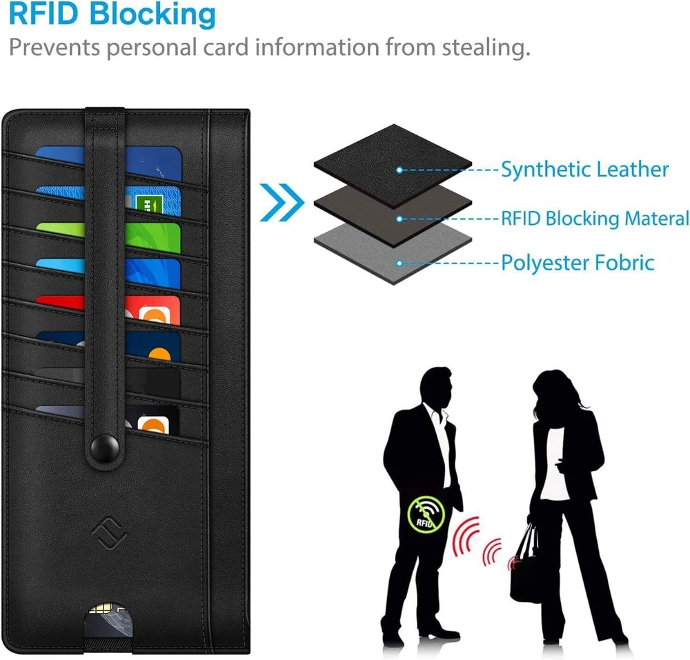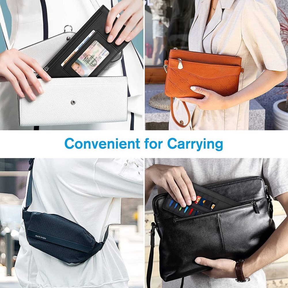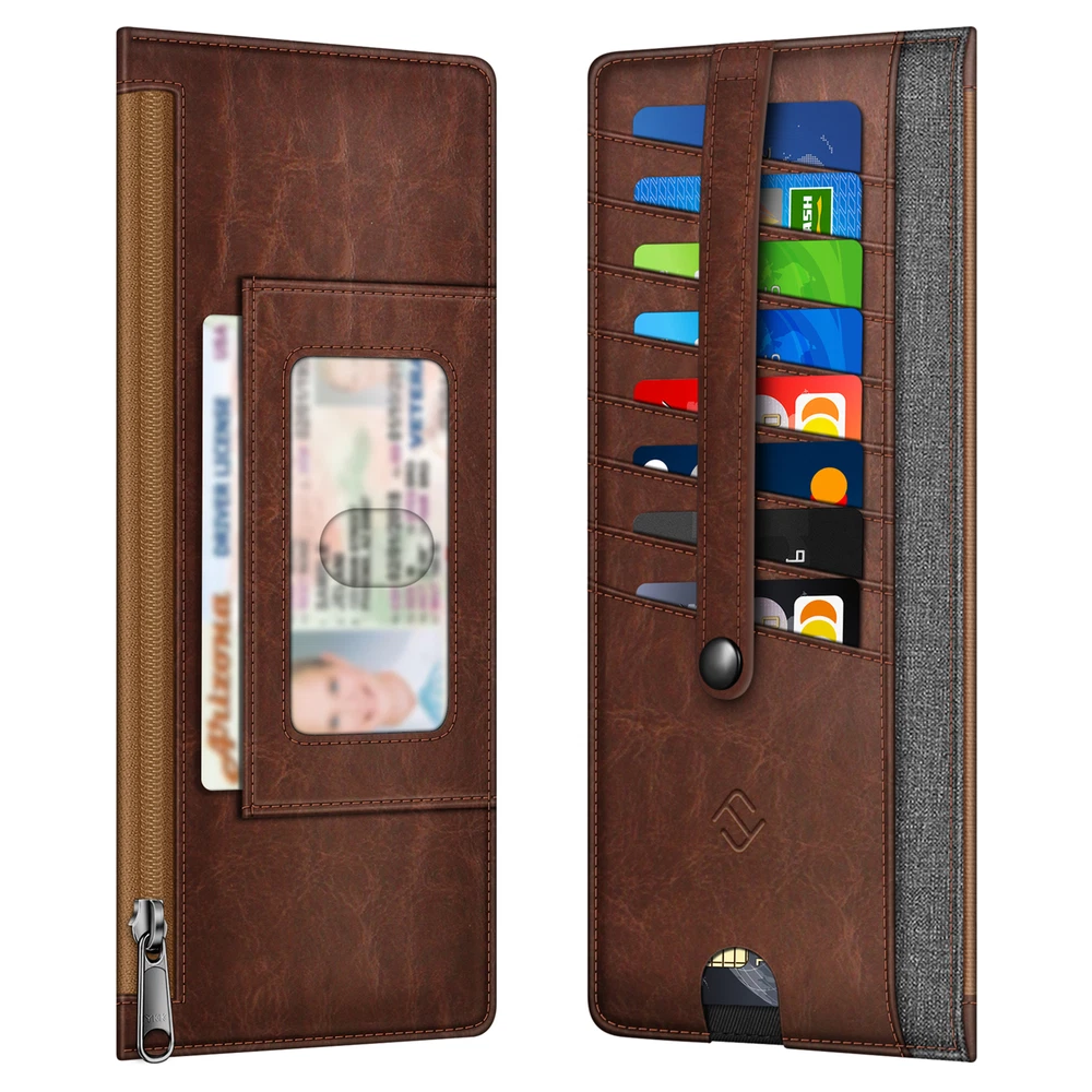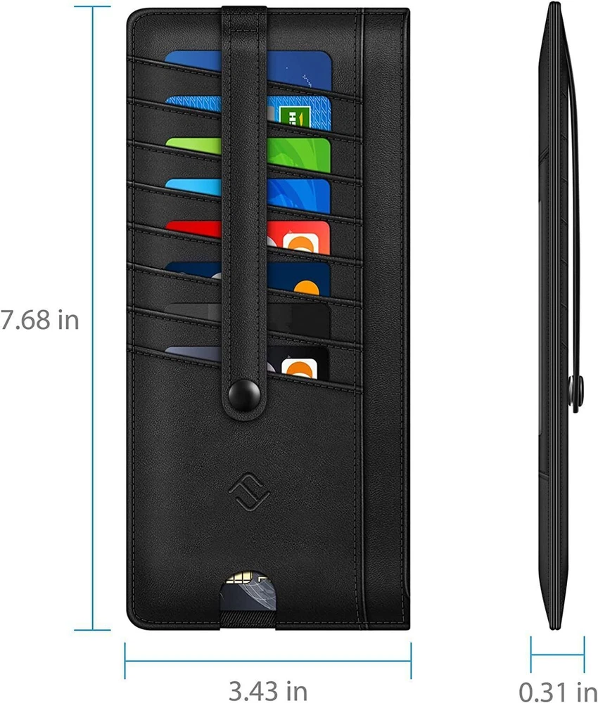 This slim wallet is perfect for anyone who wants a lightweight yet functional card holder. It fits easily in my pocket and keeps all my essentials secure with RFID blocking protection. The zippered pouch is great for coins and cash, while the snap strap prevents cards from slipping out. Love the finger groove for quick access to my most-used card, and the ID window is super handy. Holds just enough without being bulky—highly recommend for a clean, organized carry!