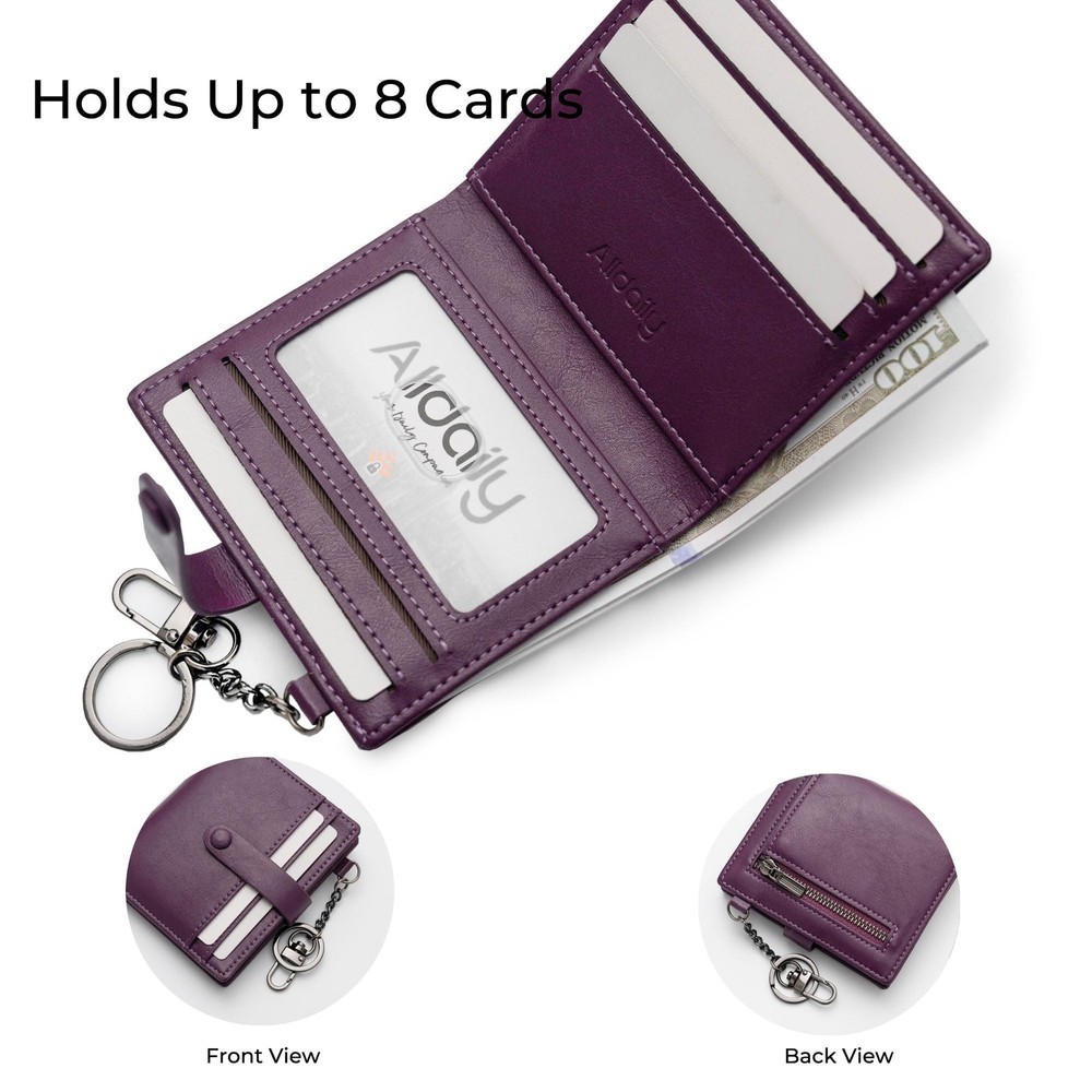 Embrace sleek functionality with the Slim Keychain Wallet, perfect for the modern woman seeking a stylish yet practical accessory. Made from premium vegan leather, this compact bifold is designed to secure and organize your essentials. Compact, Bifold Design with RFID Blocking Protect your personal information with advanced RFID blocking technology in this slim, bifold wallet. It's ideal for travel and everyday use, fitting seamlessly into pockets or purses. Practical Features for Maximum Organization This wallet features a zipper coin pocket, an ID window, and multiple card slots, ensuring that everything from credit cards to IDs is neatly organized and easily accessible. Designed for Style and Security The Keychain Wallet not only looks great but also provides peace of mind with its built-in security features. Its small size and keychain functionality make it an essential accessory for minimalists and travelers alike. Gift-Ready Packaging Presented in an attractive gift box, making it a perfect choice for special occasions like birthdays, anniversaries, or as a thoughtful travel gift. Sleek and Compact Design: Ultra-thin bifold wallet, crafted from premium vegan leather, offers a minimalist yet stylish solution for everyday carry. Fits perfectly in your pocket or purse, ideal for travel and daily use. Versatile Storage: Features a zipper coin pocket, ID window, and 8 card slots to keep your essentials organized and accessible. Includes a durable keychain for added convenience. RFID Blocking Technology: Protect your personal information with advanced RFID blocking technology, ensuring safety and security for your credit cards and IDs. Sustainable and Durable: Made with high-quality, water-resistant vegan leather that withstands wear and tear, making it a long-lasting companion for your adventures. Elegant Gift Box Packaging: Comes in a beautifully designed gift box, perfect for special occasions like birthdays, anniversaries, or as a thoughtful gift for travelers and professionals.