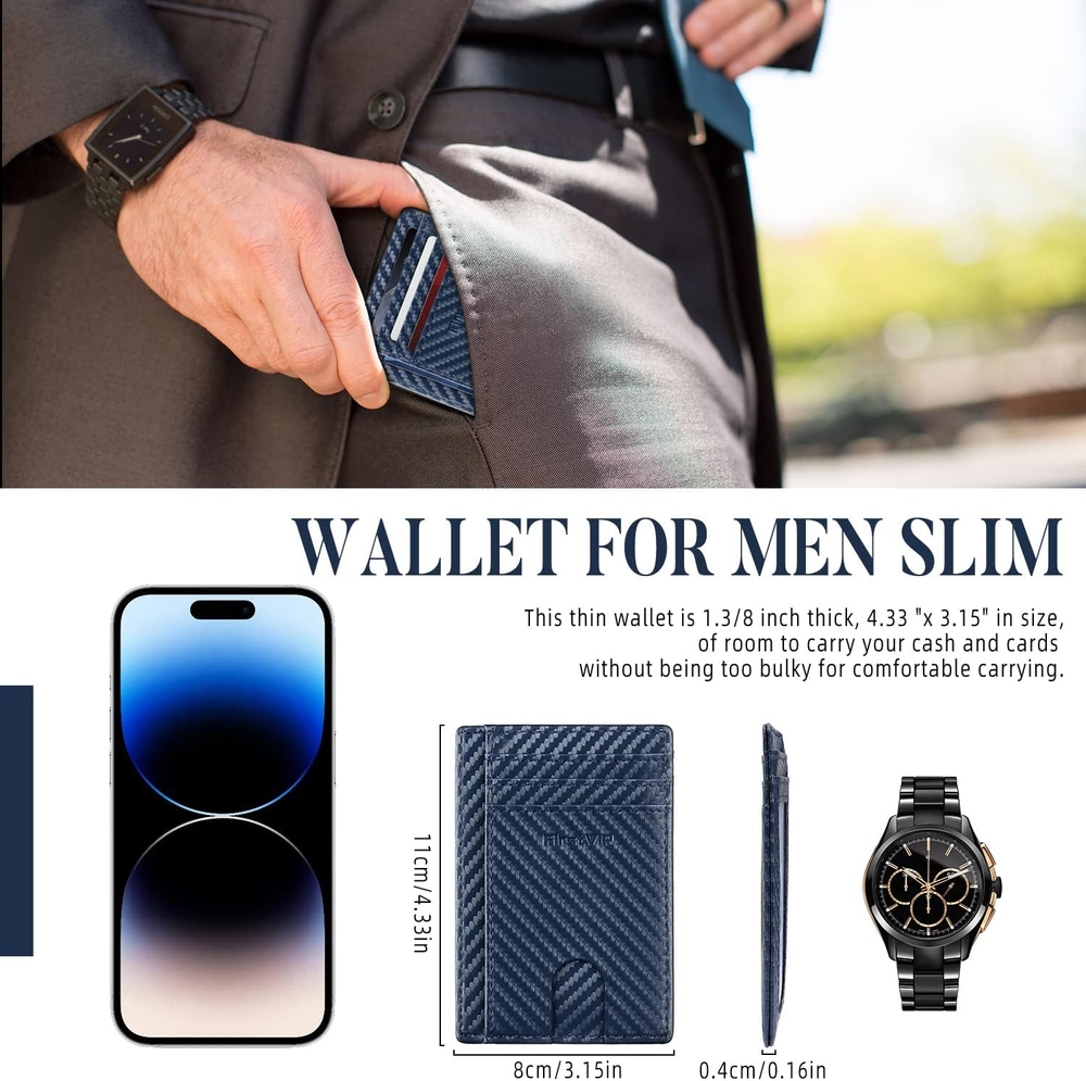 This wallet is a game-changer! Super slim yet fits everything I need, and the RFID blocking gives me peace of mind. The leather feels premium and ages beautifully. It’s so compact, I barely feel it in my pocket, but holds cards and cash securely. Perfect for anyone who hates bulky wallets but still wants style and functionality. For the price, it’s a steal!