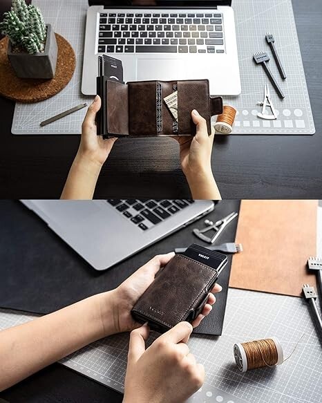 This wallet is a game-changer! Holds way more cards than expected without being bulky, and the automatic pop-up is so smooth. Love the premium leather and hand-stitched details—feels luxurious yet durable. The RFID blocking keeps my info safe, and the slim profile fits perfectly in my pocket. Super functional and stylish—best wallet upgrade ever!