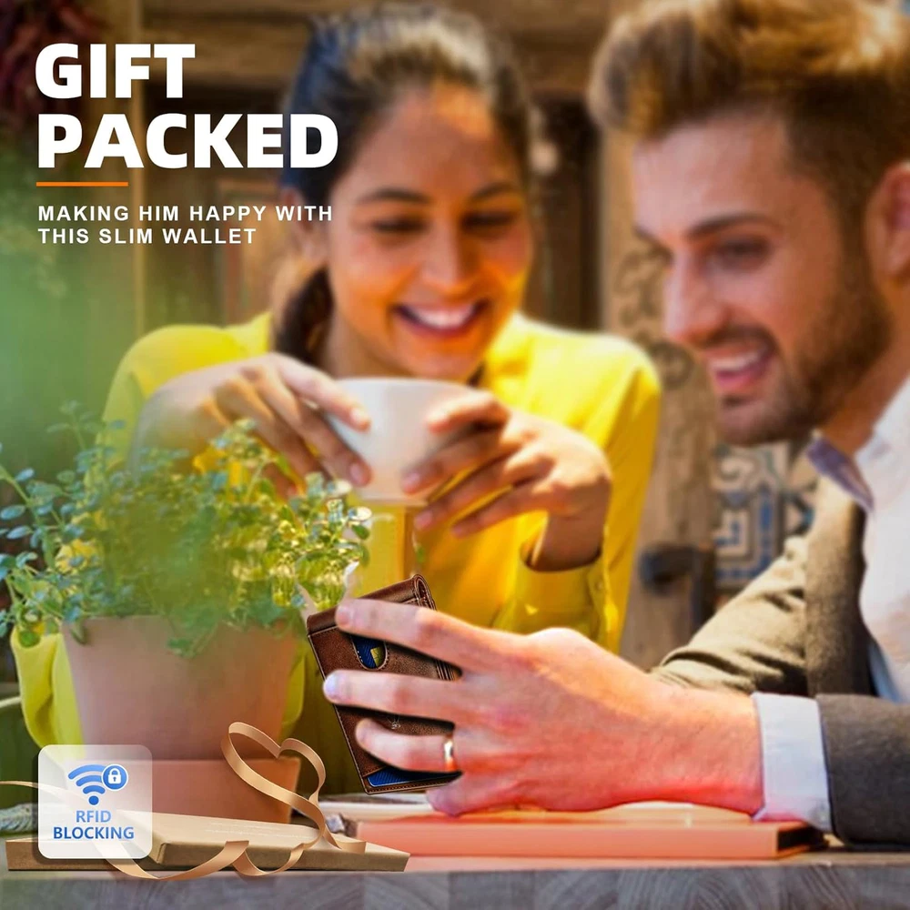 This slim leather wallet is a game-changer! Fits perfectly in my front pocket, holds all my cards securely, and the RFID blocking gives me peace of mind. Super fast shipping and the quality is outstanding—definitely worth every penny. Highly recommend!