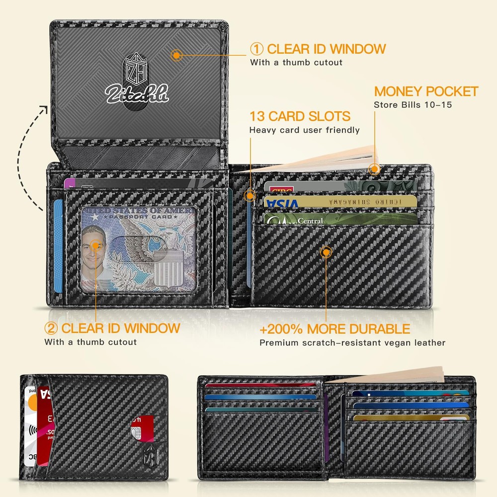 This slim wallet is a game-changer! Holds up to 15 cards without bulk, fits perfectly in any pocket, and keeps your info safe with RFID blocking. The leather feels premium, and the minimalist design is sleek yet functional. Perfect for everyday use—no more bulky wallets weighing you down. Highly recommend for anyone who wants security and style in one!