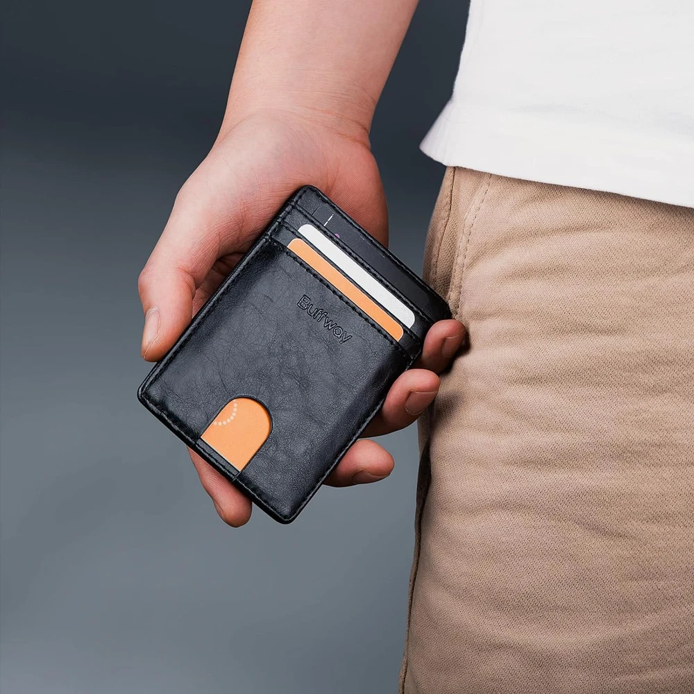 Store New Arrivals Add to Favorite View Feedback Contact Buffway Men's Slim Wallet, RFID Blocking, Minimalist Leather Credit Card Holder Buffway Men's Slim Wallet, RFID Blocking, Minimalist Leather Credit Card Holder Product Description Buffway Men's Slim Wallet – Minimalist Leather Credit Card Holder with RFID Blocking Stay organized and secure with the Buffway Men's Slim Wallet. Crafted from high-quality leather, this minimalist wallet is designed to fit comfortably in your front pocket, offering a sleek and professional look. Equipped with RFID-blocking technology, it keeps your sensitive card information safe from electronic theft. Perfect for work, travel, or everyday use, this slim wallet is an essential accessory for those who value both style and security. Key Features Slim and Minimalist Design : Thin profile fits comfortably in your front pocket without bulging. RFID Blocking Technology : Protects your credit card and personal information from unauthorized scans. High-Quality Leather : Made from premium leather, offering a sleek, stylish, and durable design. Multi-Card Capacity : Holds up to 6-8 cards, including credit cards, IDs, and business cards. Ideal for Travel and Work : Compact size makes it easy to carry during daily commuting or travel. Secure and Safe : Keeps your cards protected with RFID-blocking features for peace of mind. Lightweight and Functional : Designed for ease of use and comfort, without the bulk. Perfect Gift : An excellent choice for a gift that combines style and practicality. Durable and Long-Lasting : Built to withstand everyday wear and tear while maintaining its sleek appearance. Sleek Black Color : A versatile, professional color that complements any wardrobe. Possible FAQs What is RFID blocking? RFID blocking technology prevents unauthorized access to your credit card information through radio waves. How many cards can the wallet hold? It holds up to 6-8 cards, including credit cards, IDs, and business cards. Is this wallet suitable for front pocket carry? Yes, it is designed to be slim and compact for easy front pocket carry without bulging. What material is the wallet made from? The wallet is made from high-quality leather for a sleek and durable design. Does the wallet have RFID protection for all cards? Yes, the wallet features RFID-blocking technology that protects your sensitive cards from electronic theft. Is the wallet good for travel? Yes, its slim design and RFID protection make it an ideal travel companion for keeping your cards safe. Can I store cash in the wallet? While the wallet is designed to hold cards, it can also accommodate a few folded bills if necessary. Is this wallet durable? Yes, the high-quality leather and design ensure long-lasting durability. What color options are available for this wallet? This particular model comes in a sleek black color, perfect for a professional look. Does this wallet come with a gift box? It may not include a gift box, but its elegant design makes it a great gift on its own. Color Seattle Black Material Type Faux Leather PRODUCT DIMENSIONS : 3.15 inches x 4.17 inches x 0.59 inches. Weight: 1.41 oz About Us Welcome to Perishey, your premier destination for high-quality products at unbeatable prices. Our commitment to excellence ensures that you receive top-notch service and premium items across a variety of categories. Our professional customer support team is always ready to assist you with any inquiries or needs, ensuring a seamless shopping experience. We take pride in serving you and strive to bring a smile to your face with our exceptional service and products. Visit our eBay store to explore our full range of offerings and discover the great deals we have in store for you. Thank you for choosing Laelegencia. Payment policy We have eBay Managed Payments, allowing you to pay with any payment method that eBay accepts. Please ensure that your shipping addresses are accurate. Immediate payment is required before we can send out your package. Shipping policy We are always working hard to ensure your package arrives as soon as possible. Please understand that some factors like weather, high postal traffic, and the performance of shipping companies are outside of our control. In most cases, your package will arrive before due time as it is a high priority for us. If there are any unexpected delays, please let us know and we will take care of it immediately. We have multiple locations in the US; residents of these states will be charged tax according to the state they reside in. Tax information is available at checkout. Returns We are committed to your happiness. That’s why we offer a 30-Day Return Policy on items that you are not completely satisfied with. You have the option for a refund or an exchange of the item. No returns are available on items shipped outside of the USA.