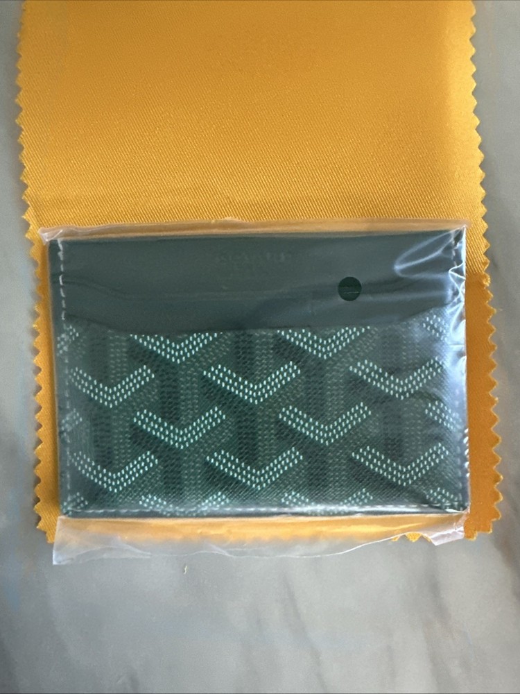 The Men’s Wallet is a stylish and practical accessory for men, featuring a solid green color with a leather material construction. It is a bifold wallet with a logo accent, perfect for holding credit cards and cash. Manufactured between 2020-2029, this wallet from the brand Goyard is designed for modern men who appreciate quality and sophistication in their accessories.