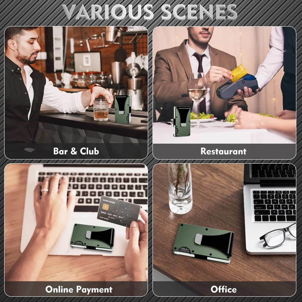 Love this sleek, functional wallet! It holds plenty of cards and cash without bulk, fits comfortably in my pocket, and the RFID blocking gives me peace of mind. The metal build feels premium, and the minimalist design looks sharp. No more bulky wallet—highly recommend!