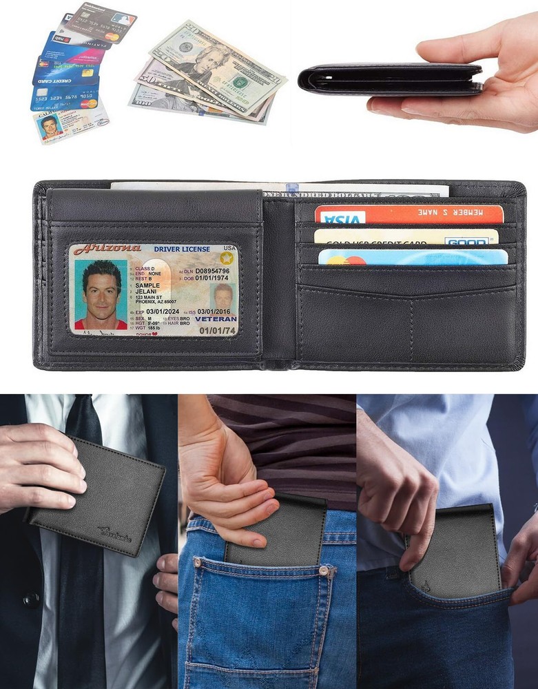 Wallet for Men, Premium Classic Mens Wallet Minimalist Slim Bifold Wallet, RFID Features: 3 IN 1 Large-Capacity Wallet: Slim and roomy, this minimalist wallet for men boasts 10 card slots, 2 cash slots, and 2 ID windows, effortlessly holds all your cards without adding bulk to your pocket, helps you stay organized, efficient yet elegant The Superior Craftsmanship: This mens wallet is meticulously hand-sewn from high-quality, thick leather; The stitching is straight and tight; The smooth surface has no cracks or notches; Surface waterproof is not easy to damage the interior;Durable and cost-effective. Advanced RFID Blocking:Our Travelambo Bifold wallet employs cutting-edge RFID Wave Blocking technology composite material that blocks RFID signals at 13.56 MHz or higher frequencies; Perfectly protects your privacy, travel with peace of mind Showcase Men's Charm: Selecting a superior compact wallet is a crucial element of a refined man's discerning taste; This exquisite texture not only exudes an air of aristocracy but also create a unique and exclusive temperament that is uniquely yours; You're Worth It The Surprise is on the Way: A distinctive present (anniversary, weddings, birthdays, Father's Day, Valentine's Day) for grandpa, boyfriend, husband and father; Each time he uses this unique RFID wallet, it will evoke cherished memories Details: Description Get Your Hands on Our SLEEK Men’s Wallets We have such a large variety of SLEEK men’s wallets that you’re going to have a hard time choosing your favorite. Lucky for you – and because we love you so much – these accessories feature delicious details, high performing functionality and classic silhouettes that will easily fit right into your life and style. It’s ready to keep your look fresh wherever your day takes you. Carry one of our fashion wallets with you to the gym; they easily fit inside of your locker without getting lost or taking up a lot of space. Then you can easily grab your juice on the way out or stop by the coffee shop before going home to clean up. When you’re ready to start your day, slip one of these beauties into your purse and head into the office without missing a beat. On the weekends, you’ll love grabbing one of our Travelambo mens wallet in the morning and heading out for a day of shopping with girlfriends, running errands and then back with girlfriends for a night out on the town. You’ll love how versatile these wallets are and the ease they add to your routine. Features: 3 IN 1 Large-Capacity Wallet: Slim and roomy, this minimalist wallet for men boasts 10 card slots, 2 cash slots, and 2 ID windows, effortlessly holds all your cards without adding bulk to your pocket, helps you stay organized, efficient yet elegant The Superior Craftsmanship: This mens wallet is meticulously hand-sewn from high-quality, thick leather; The stitching is straight and tight; The smooth surface has no cracks or notches; Surface waterproof is not easy to damage the interior;Durable and cost-effective. Advanced RFID Blocking:Our Travelambo Bifold wallet employs cutting-edge RFID Wave Blocking technology composite material that blocks RFID signals at 13.56 MHz or higher frequencies; Perfectly protects your privacy, travel with peace of mind Showcase Men's Charm: Selecting a superior compact wallet is a crucial element of a refined man's discerning taste; This exquisite texture not only exudes an air of aristocracy but also create a unique and exclusive temperament that is uniquely yours; You're Worth It The Surprise is on the Way: A distinctive present (anniversary, weddings, birthdays, Father's Day, Valentine's Day) for grandpa, boyfriend, husband and father; Each time he uses this unique RFID wallet, it will evoke cherished memories Details: Description Get Your Hands on Our SLEEK Men’s Wallets We have such a large variety of SLEEK men’s wallets that you’re going to have a hard time choosing your favorite. Lucky for you – and because we love you so much – these accessories feature delicious details, high performing functionality and classic silhouettes that will easily fit right into your life and style. It’s ready to keep your look fresh wherever your day takes you. Carry one of our fashion wallets with you to the gym; they easily fit inside of your locker without getting lost or taking up a lot of space. Then you can easily grab your juice on the way out or stop by the coffee shop before going home to clean up. When you’re ready to start your day, slip one of these beauties into your purse and head into the office without missing a beat. On the weekends, you’ll love grabbing one of our Travelambo mens wallet in the morning and heading out for a day of shopping with girlfriends, running errands and then back with girlfriends for a night out on the town. You’ll love how versatile these wallets are and the ease they add to your routine. eBay integration by