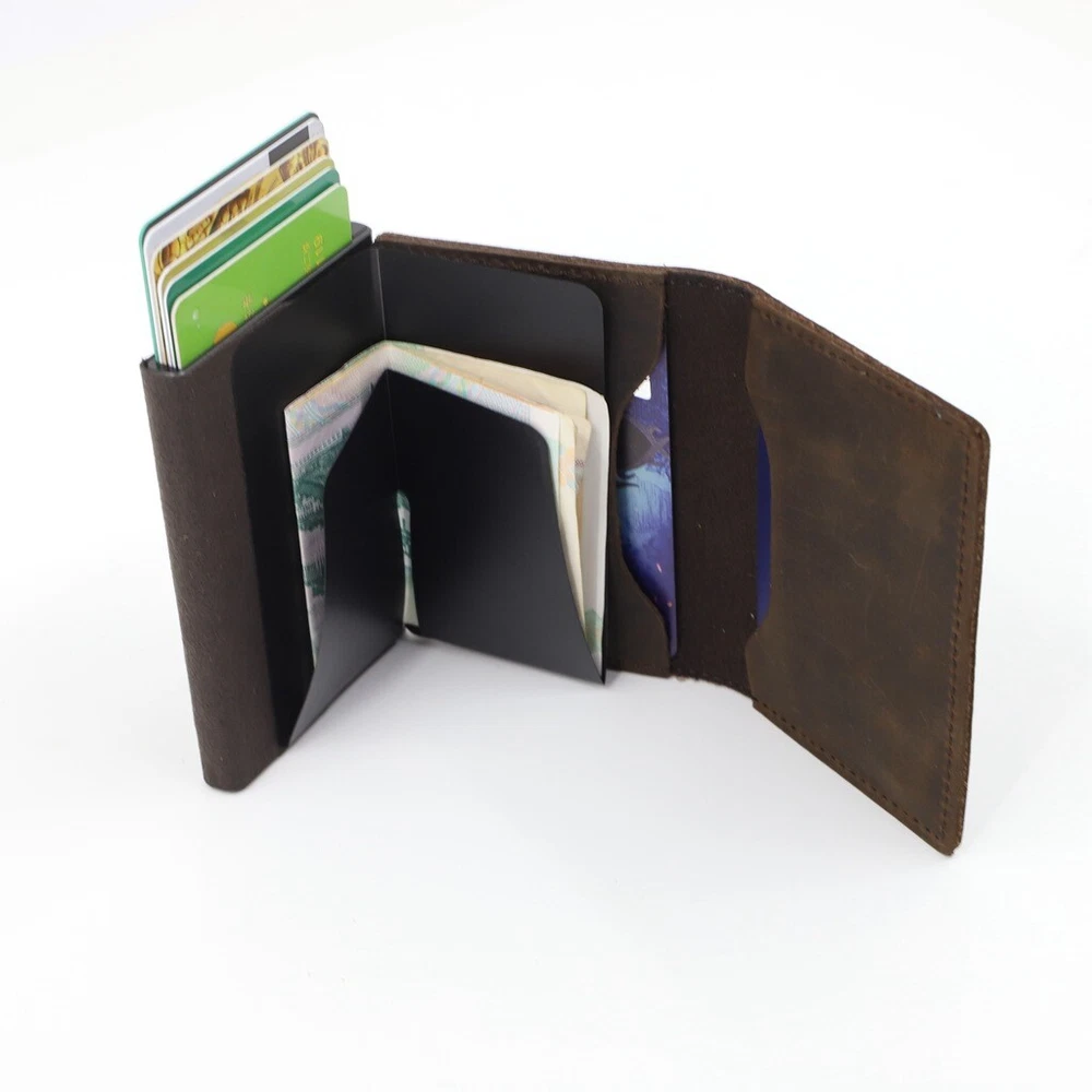[product name]: pu card case [product material]: PU leather + plastic card box [Product color]: black, brown, brown, carbon fiber [Product size]: Width 7cm*height 10cm*thickness 2cm; unfolded width 14cm [Product weight]: about 100g [product packaging]: black gift box 11*8*2.3cm