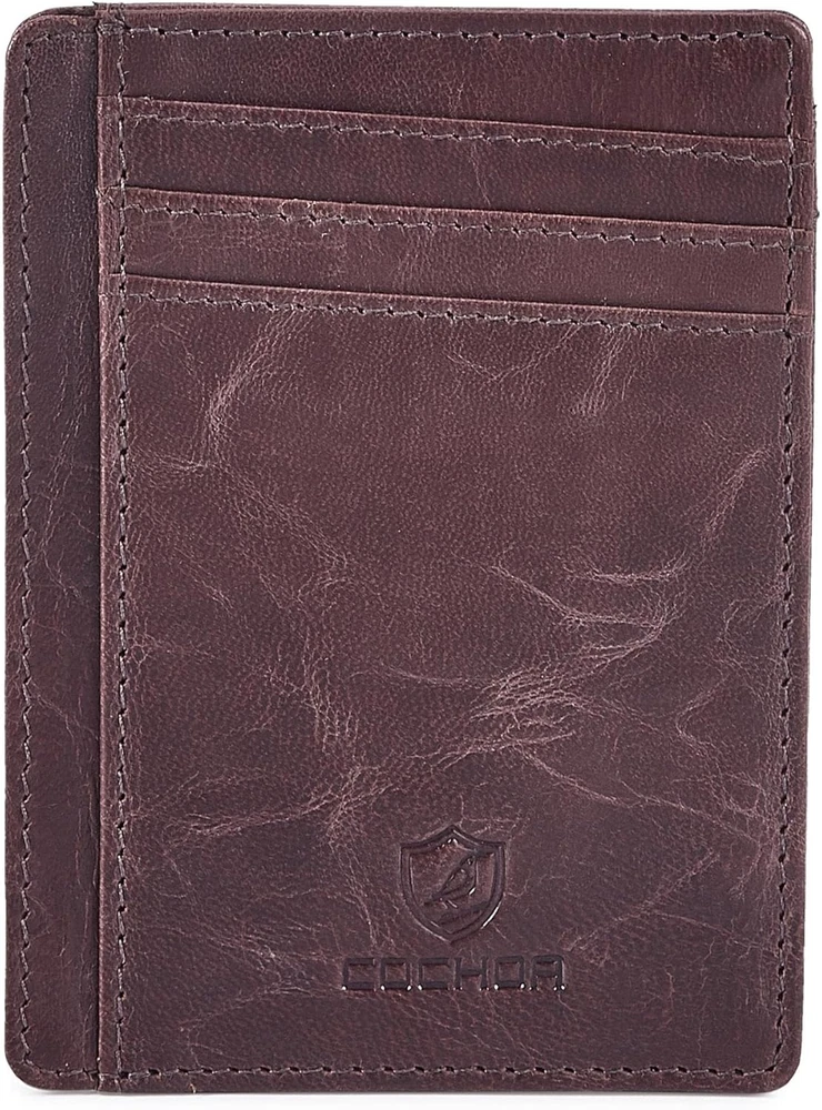 Love this slim, stylish wallet! The genuine leather feels amazing and gets better with time. Perfect size for front pockets, holds cards securely, and the RFID blocking gives peace of mind. The smooth finish and variety of colors make it a great choice—highly recommend!