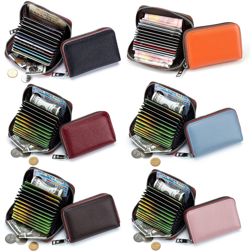 About this item Zipper closure.it is RFID protected for security 【Material】Genuine Leather,Fabric lining,accordion style wallets 【Dimensions】4.33"L x 2.95"W x 0.98"H,the little leather card case holds at least a dozen cards 【Multi-slots】the card wallet has 12 card slots with 2 larger spaces for bills, more cards or receipts 【RFID blocking layer】it is rfid blocking ,2 outer layers RFID blocking materials ,Be Safe and Protected from Electronic Pick Pocketing 【Service】We are committed to creating exquisite services, any questions, please contact us , we will solve the problem for you in 24 hours
