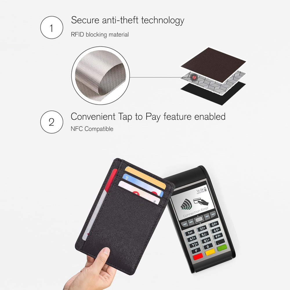 This sleek wallet is a game-changer! The genuine leather feels luxurious yet durable, and the slim design fits perfectly in any pocket. Love the RFID blocking—keeps my cards safe without adding bulk. Perfect for those who want style and security in one minimalist package. Highly recommend!
