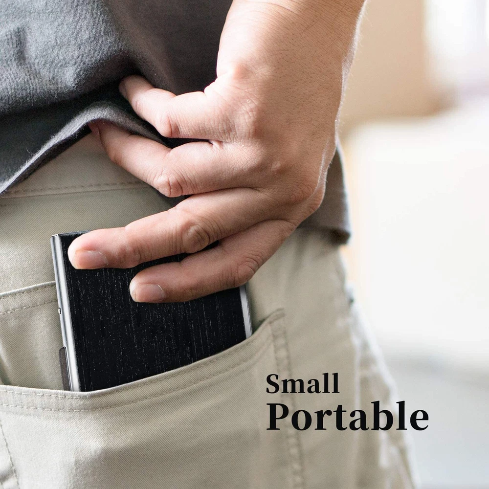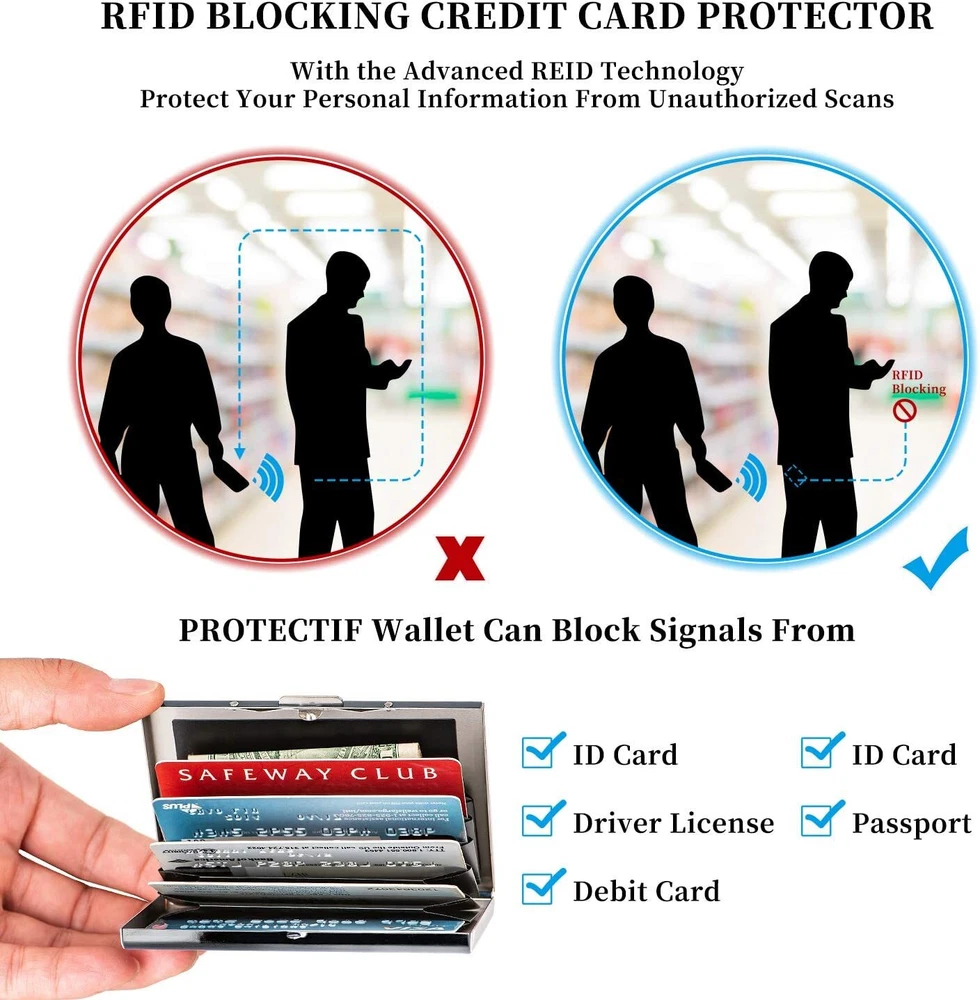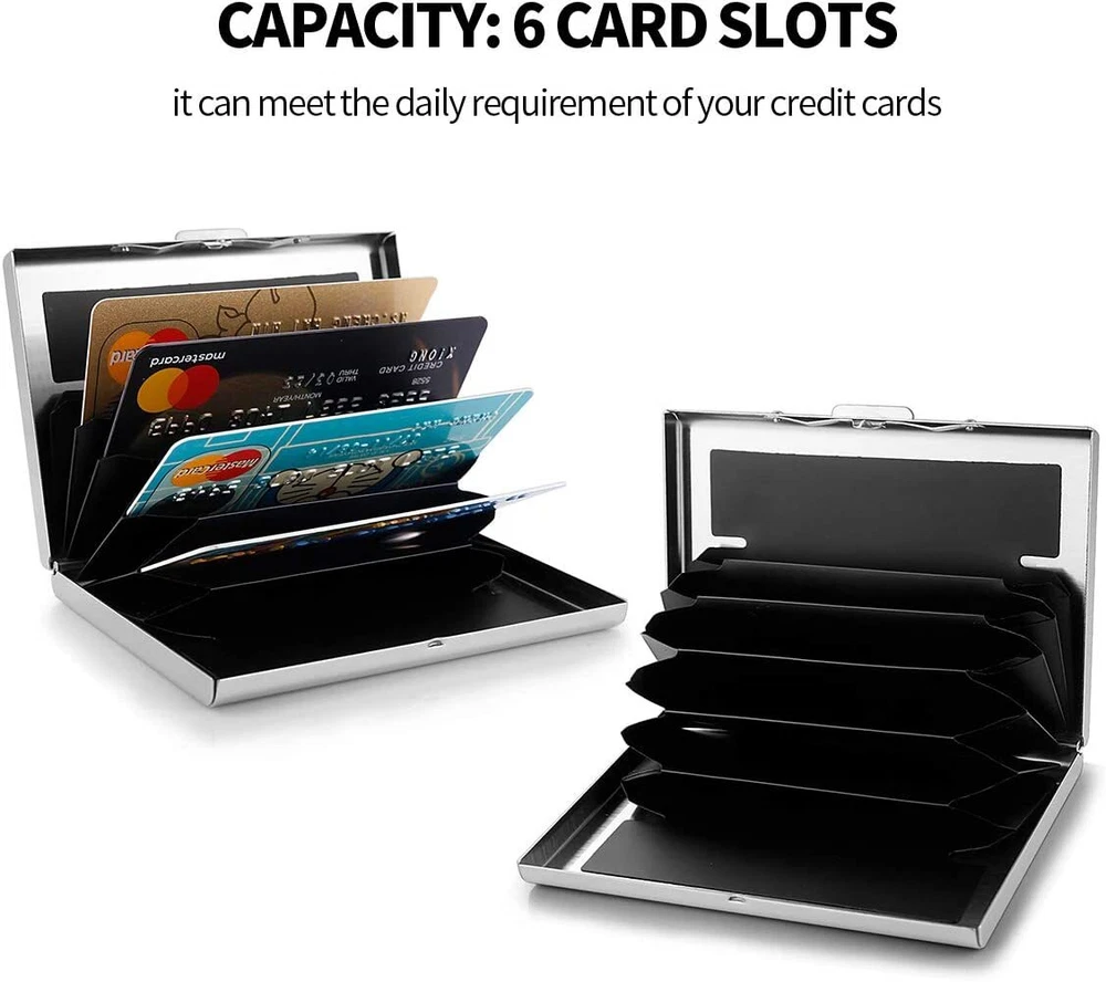 This slim RFID-blocking wallet is a game-changer! Perfect for travel or daily use, it holds cards and cash securely while keeping your info safe from scans. The stainless steel build is sleek yet durable, fitting comfortably in any pocket. A must-have for peace of mind and organization—no more bulky wallets!
