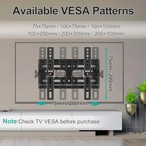 Return Policy Fast Delivery Trusted seller Tilting TV Wall Mount Bracket, Universal TV Mount Low Profile for 14-42 Inch Flat Screen TVs,Easy to Install with Tilting Knob,Max VESA 200x200mm, 55 lbs,Tilt Feature Allows Adjustme Product Description Fashionable and concise design: Our tilt TV wall mount features a fashionable and clean design, enhancing the overall aesthetics of your living space. Easy Installation: With its simple installation process, setting up our tilt TV wall mount is a breeze complete with instructions and mounting accessories, saving you time and effort. High-Quality Product: Crafted with premium cold-rolled steel, our tilt TV wall mount ensures durability and stability, providing a reliable and secure support for your TV. Versatile Size Compatibility: Fits most 14'' - 42'' flat & curved TVs weighing up to 55LBS compatible VESA holes: 200x200/200x100/100x100/75x75/50x50mm. Please confirm the VESA, weight and size specification of your TV before purchg. Note:Do not install separately on dry walls, Feel free to contact us if you have any questions. Shipping Returns Payment Shipping Shipping is FREE to all addresses other than APO/PO boxes in the lower 48 states. All our stock ships from US-based warehouses. Shipped via USPS or UPS (depending on location and package weight) Unless stated otherwise, all orders will ship within 24-72 hours of your payment being processed. Check our feedback to see the great reviews of FAST shipping we offer. Returns Seller does not accept returns Payment We currently accept payment via eBay managed payments only. Once payment is cleared, we will dispatch your shipment within 1-3 business days. Please refer to the "Shipping" tab for more information regarding shipping speed to your destination.