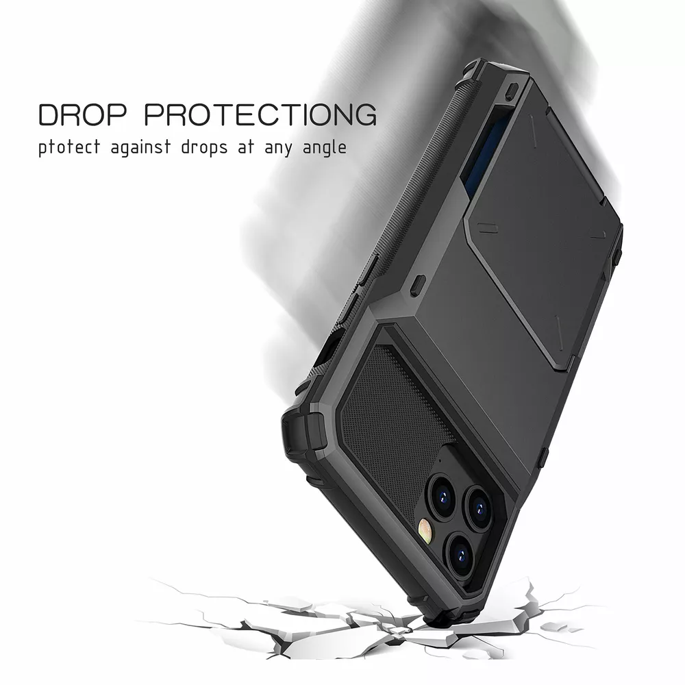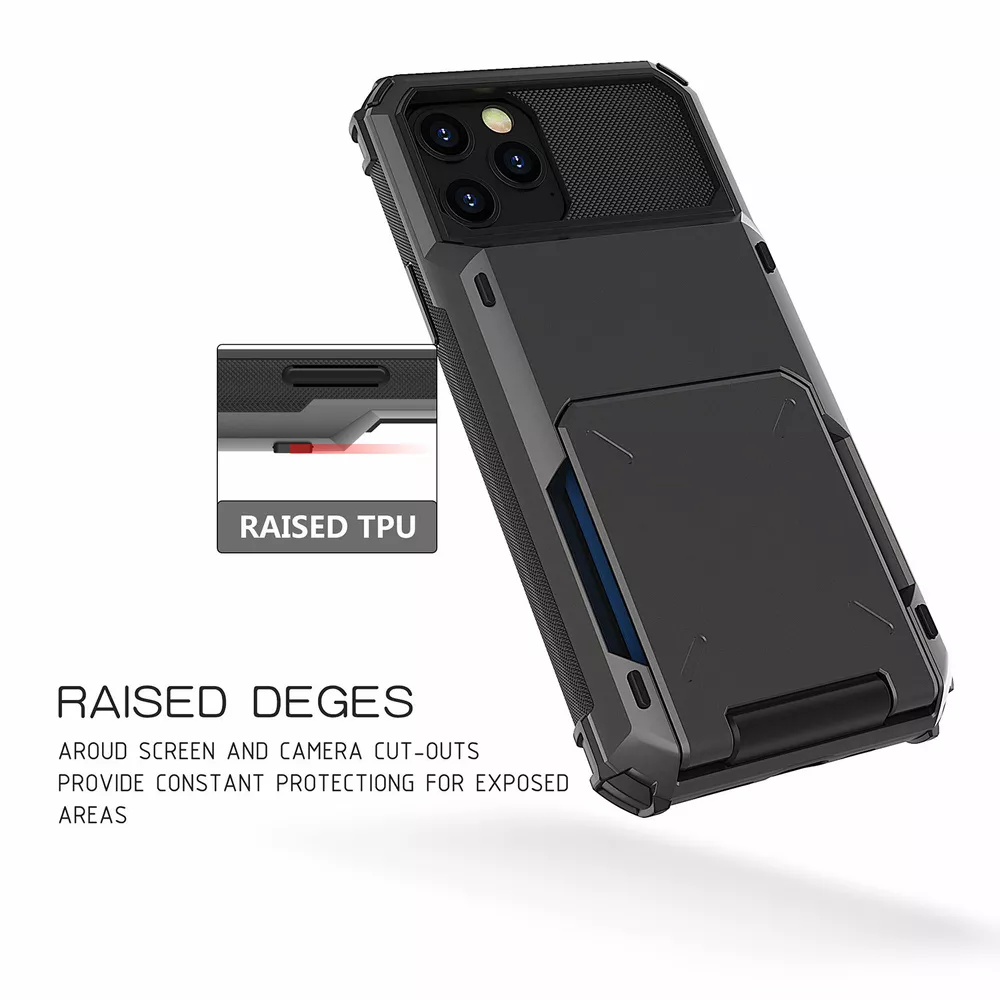 Features: -- Constructed of high-quality polycarbonate and TPU material with smooth finish -- Dual layer of protection with shock resistant inner layer, light weight, soft and easy to install. -- Security card slot: The card can store up to 4~5 cards, which can carry ID card, credit card and change money safely. -- Flip cover design makes it easier to open and close. Built-in durable and wear-resistant spring can be used for long-term use. -- Anti-slip, tactile grip perimeter texture designed to release the flow of forced energy created from drops. -- Quick Connect cover protects the charge and audio ports from dust and dirt. -- Stylish, slim, and light-weight with access to all buttons. Package Included: 1 x Hybrid Slide Card Slot Wallet Case