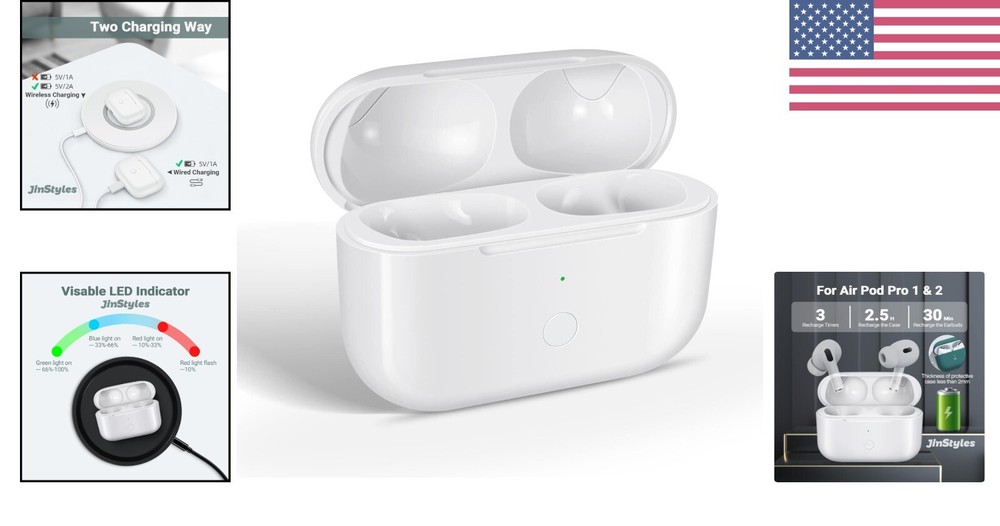 Compact Charging Case for AirPods Pro: Wireless & Lightning Compatible, 660mAh < class="slides"> ‹ › ‹ › ‹ › ‹ › ‹ › ‹ › ‹ › ‹ › ‹ › ‹ › Compact Charging Case for AirPods Pro Wireless & Lightning Compatible, 660mAh Features: <> 660 mAh capacity can fully charge your AirPods Pro three times. Compatible exclusively with AirPods Pro 1st and 2nd generation - ensure your model fits. Two versatile charging methods: Wireless or Lightning cable, adapt to your preference. Visible LED indicators for real-time awareness of charging status for both case and earbuds. Fast charging capabilities: fully charge the case in just 2.5 hours and earbuds in only 30 minutes. Benefits: <> Effortlessly charge your AirPods Pro on-the-go. Stay informed about battery life with convenient LED indicators. Experience the freedom of wireless charging or the reliability of a wired connection. No more anxiety about losing your earbuds with a reliable charging companion. Enjoy uninterrupted listening; with the ability to charge your earbuds three times, adventure is at your fingertips. Why Choose Our Compact Charging Case? Are you facing the frustrating challenge of misplaced AirPods Pro charging cases? Our Compact Charging Case is your perfect solution, engineered for seamless compatibility with your AirPods Pro 1st and 2nd generation. With a robust 660 mAh battery, you can rejuvenate your earbuds three times over, ensuring your melodies continue without interruptions. Choose between convenient wireless charging or traditional Lightning cable charging, all while staying informed with clear LED indicators. Designed for today’s fast-paced lifestyle, this case charges rapidly—fully replenishing in just 2.5 hours while bringing earbuds back to life in a mere 30 minutes. Elevate your AirPods experience with this must-have charging companion. Make the smart choice today; keep your music flowing, wherever life takes you! Shipping <> <> Free & Fast Shipping - We offer free shipping to most of the USA with a normal delivery time of 3-7 days. However, due to the current situation, additional delivery time (up to 3 weeks) may be required for some items. Alternative Carriers - We may use alternative carriers (e.g. USPS, FedEx, UPS, etc.) to ensure your package arrives safely and on time. Due to the use of multiple carriers, we are unable to provide a tracking number automatically. Handling Time - Orders are processed and shipped within 1-2 business days of receiving cleared payment. Shipping Restrictions - Shipping to Alaska, Hawaii, Puerto Rico, Guam, and other US territories may incur shipping charges or delivery restrictions. Please contact us before ordering, or your order can be refunded/cancelled. State Restrictions - There may be restrictions based on your state of purchase. For example, certain items may not be shipped to California due to state regulations. Contact for Tracking Updates - If you require tracking updates or have any concerns about the delivery of your order, please feel free to contact us, and we will be happy to assist you. Return <> <> 30-Day Hassle-Free Returns - We want you to be completely satisfied with your purchase. If you are not, you can return the item within 30 days of receiving it for a full refund or exchange. Easy Return Process - To start a return, simply contact us and we will provide you with a prepaid return shipping label and detailed instructions. Restocking Fee - There are no restocking fees for returns. However, the buyer is responsible for return shipping costs if the return is not due to a seller's error. Refund Processing Time - Refunds will be processed within 5 business days of receiving the returned item in its condition. Payment We accept all major credit cards, PayPal, and Apple Pay for your convenience. Your payment information is secure and encrypted to ensure a safe and seamless transaction. Please complete your payment within 3 days of purchase to avoid any delays in shipping. Feedback Your feedback is extremely important to us. We strive to provide the best products and customer service possible. If you are satisfied with your purchase, please take a moment to leave us a positive review. If you have any concerns or issues with your order, please contact us before leaving negative feedback. We are committed to resolving any problems and ensuring your satisfaction. Contact Us If you have any questions or concerns, please feel free to out to our customer support team. You can contact us through the eBay messaging system. We are available Monday to Friday, 9:00 am to 5:00 pm EST, and we will do our best to respond to your inquiry within 24 hours. Buy it now and enjoy a pleasant shopping experience! Connectivity: Details In Description Type: Details In Description Model: Details In Description Color: White Form Factor: Case