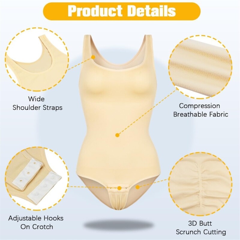 This slimming bodysuit is a game-changer! The tummy control is firm yet comfortable, smoothing everything out without feeling restrictive. The stretchy fabric moves with you all day, and the round neck adds a classy touch. Perfect under dresses or alone, it gives a flattering silhouette while staying breathable. Postpartum moms and anyone wanting extra confidence will love how it shapes without sacrificing comfort. The sizing is inclusive, fitting various body types beautifully. A must-have for effortless shaping!
