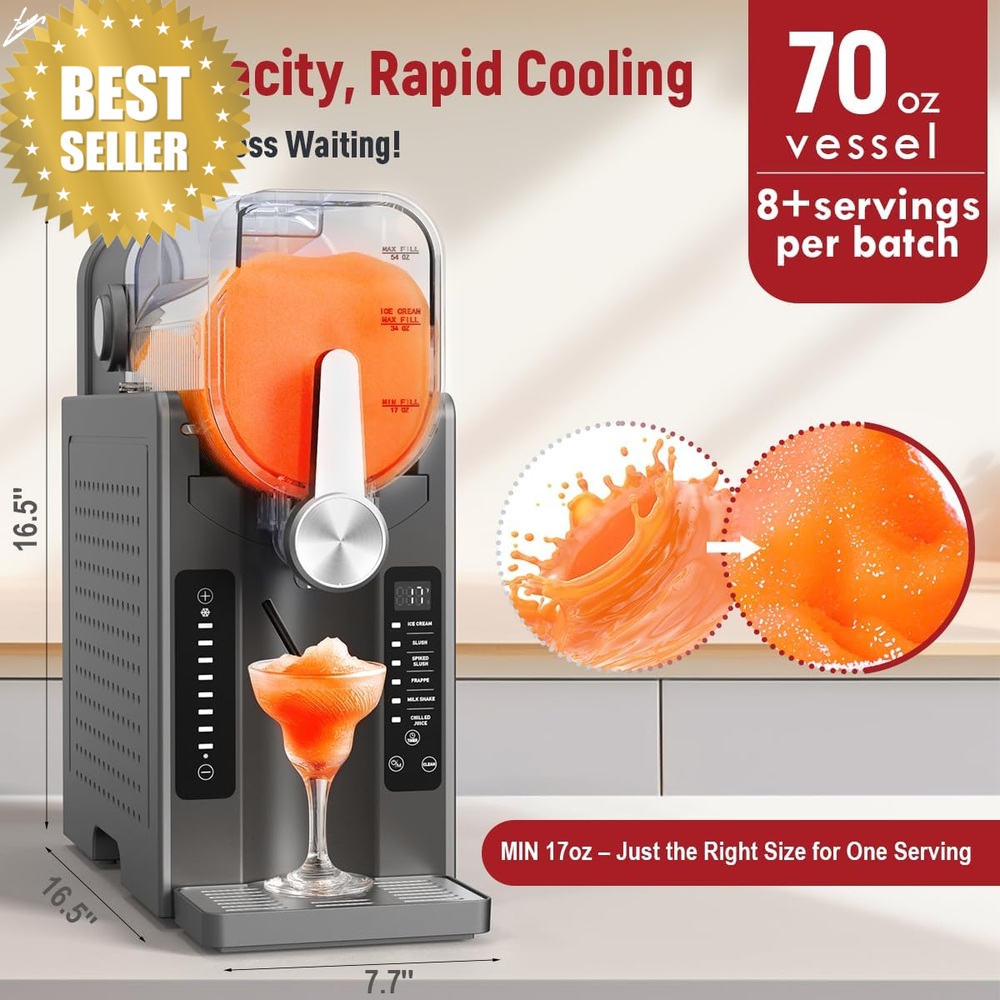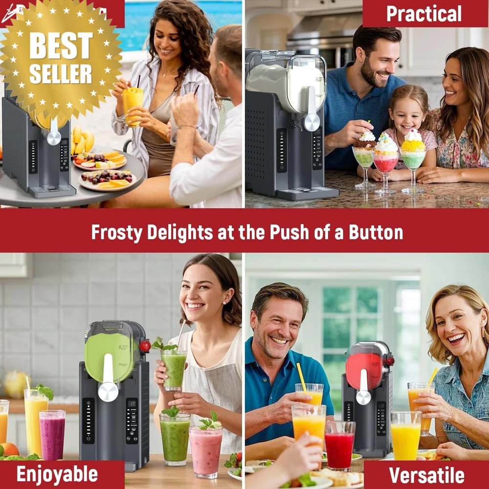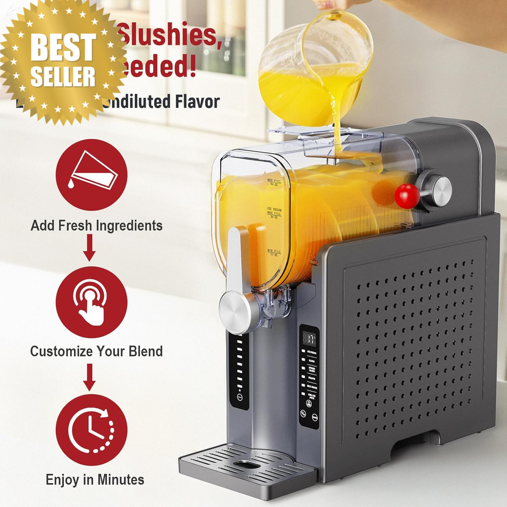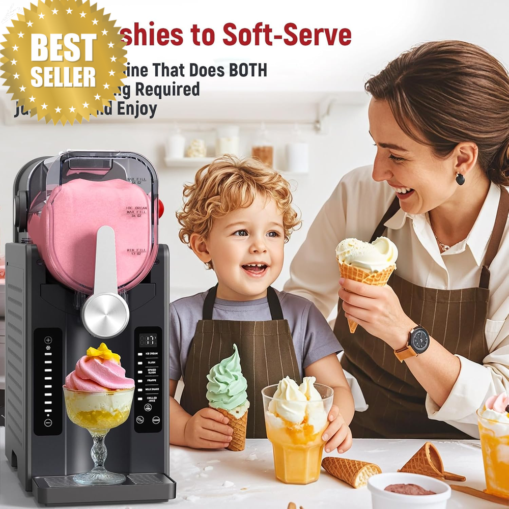 🍦 UJR Slushie & Ice Cream Machine – No Ice Needed | 68oz All-In-One Frozen Drink Maker | 6 Presets, Real-Time Temp Display, Auto-Clean | Perfect for Smoothies, Milkshakes, Margaritas & More! 🪶 Product Description Ready to upgrade your summer drinks and desserts? ☀️ Meet the UJR All-In-One Slushie Maker — your personal smoothie station, cocktail bar, and soft-serve ice cream machine in one compact powerhouse. Whether you're crafting velvety milkshakes, creamy ice cream, or party-perfect frozen margaritas, this machine has you covered with no need for ice or freezer bowls. Just pour, press, and enjoy real-flavor frozen treats — no dilution, no waiting, no hassle. Ideal for family fun, solo indulgence, or your next get-together, this multi-use machine delivers fun and flavor, fast. 📏 Specifications Capacity: 68 oz (serves up to five 9-oz portions) Color: Sleek Black Material: Premium plastic & stainless steel internals Power: Standard U.S. plug, ultra-quiet motor Presets: 6 modes (smoothies, slushies, milkshakes, soft-serve ice cream & more) Display: Real-time temperature monitoring Cleaning: Auto-cleaning mode + dishwasher-safe parts Freezing Speed: As little as 5 minutes with FastChilL™ technology 🔧 Key Features ✅ No Ice Required – Enjoy flavorful drinks with zero dilution ✅ All-in-One Convenience – Blend slushies, smoothies, milkshakes & ice cream in one unit ✅ Quick Freeze Mode – Treats ready in as little as 5 minutes ✅ Large Capacity with Portion Control – Make 5 full servings or one perfect solo cup ✅ Smart Touch Panel – 6 presets + scheduling for perfect timing ✅ Real-Time Temperature Display – Keeps you in control ✅ Auto-Clean Function – Add water, press start — that’s it! ✅ Ultra-Quiet Operation – Minimal noise, maximum fun 🌟 Why You'll Love It ✔️ Save space — replaces multiple bulky machines ✔️ Host like a pro with quick batches for parties ✔️ Kid-friendly and cocktail-ready ✔️ No pre-freezing = instant dessert freedom ✔️ Easy cleanup means more time enjoying your treats 📦 What’s in the Box? 1 × UJR Slushie, Smoothie & Ice Cream Maker 1 × User Manual 💡 Tips for Use Use liquids with natural or added sugar for proper freezing Add ingredients mid-blend if needed — great for custom creations Read the instruction manual for best results 📦 Fastest Shipping Guaranteed Unlike other stores that offer cheaper products but come with delivery delays of up to 30 days, we take pride in offering fast and reliable shipping. Based in the American, we guarantee that your order will be delivered within 5–12 days, with no unexpected delays (unless under rare circumstances). When you shop with us, you’re choosing speed and satisfaction. 📦🚚 ❓ FAQs Q: Does this machine require ice or a freezer bowl? A: No — the UJR uses FastChilL™ tech to freeze without added ice or pre-freezing. Q: What kinds of drinks and desserts can I make? A: Everything from smoothies and slushies to milkshakes and soft-serve ice cream! Q: Is it easy to clean? A: Yes — just use the built-in auto-clean mode or place parts in the dishwasher. Q: How long does it take to freeze a drink or dessert? A: As little as 5 minutes, depending on the settings and ingredients. Q: Can I make small servings or do I have to fill it up? A: You can make just one cup or up to five — it’s fully portion-adjustable.
