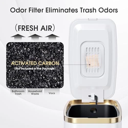 30 Days Return Policy Fast Delivery Trusted seller Small Bathroom Trash Can with Lid Soft Close-5L/1.3 Gal Slim Garbage Can-Metal Step Wastebasket-Rectangle Narrow Waste Bin for Office, Bedroom, Toilet, Live Room-White Product Description Silent Soft Close & Stay Open Lid: The Stainless steel trash can is made with a stay-open Function that Pushes the lid at 90° to stay open; The lid has a damper arrangement that retards the close of allows the lid to close quietly and safely by itself every time Slim Design: The small rectangular trash can is easily fitting into Narrow spaces and Bathroom corners with its slender profile; such as bathroom, bedroom, office, toilet, kids room, powder room, farmhouse, apartments, campers, RVs, dorm rooms, etc Removable Inner Bucket: The step trash can has a durable plastic liner bucket that can be easily lifted out for easy dumping of trash and rinsing quickly when needed; T is a carry handle on the back of the slim trash can to move it easier Durable Pedal & Non-Slip Bottom: This small metal trash can has a metal pedal that is anti-rust, durable, and Ergonomically designed to open with minimal force; The step design means you can operate it hands-free Deodorizing Function: The included odor filter absorbs trash odors, 360° sealed space prevents odors from escaping from the can, leaving your space smelling fresh and clean High-Quality Material: The body of this garbage can is made of Stainless Steel, thick and durable, and anti-fingerprint; The inner barrel is made of pp material, and the inner barrel is equipped with a garbage bag fixing ring to prevent the garbage bag from falling Excellent Customer Service: If you received a small trash can that is dented, broken, or the wrong color, please feel free to contact us and we will answer within 24 hours, your satisfaction is the encouragement of us to chase high-quality products Shipping Returns Payment Shipping Shipping is FREE to all addresses other than APO/PO boxes in the lower 48 states. All our stock ships from US-based warehouses. Shipped via USPS or UPS (depending on location and package weight) Unless stated otherwise, all orders will ship within 24-72 hours of your payment being processed. Check our feedback to see the great reviews of FAST shipping we offer. Returns As our valued customer, we will do our best to make sure the product you receive arrives to you on time and as expected. If you are not satisfied with your purchase, please contact us within 30 days of receiving your order to process a return. Payment We currently accept payment via eBay managed payments only. Once payment is cleared, we will dispatch your shipment within 1-3 business days. Please refer to the "Shipping" tab for more information regarding shipping speed to your destination.