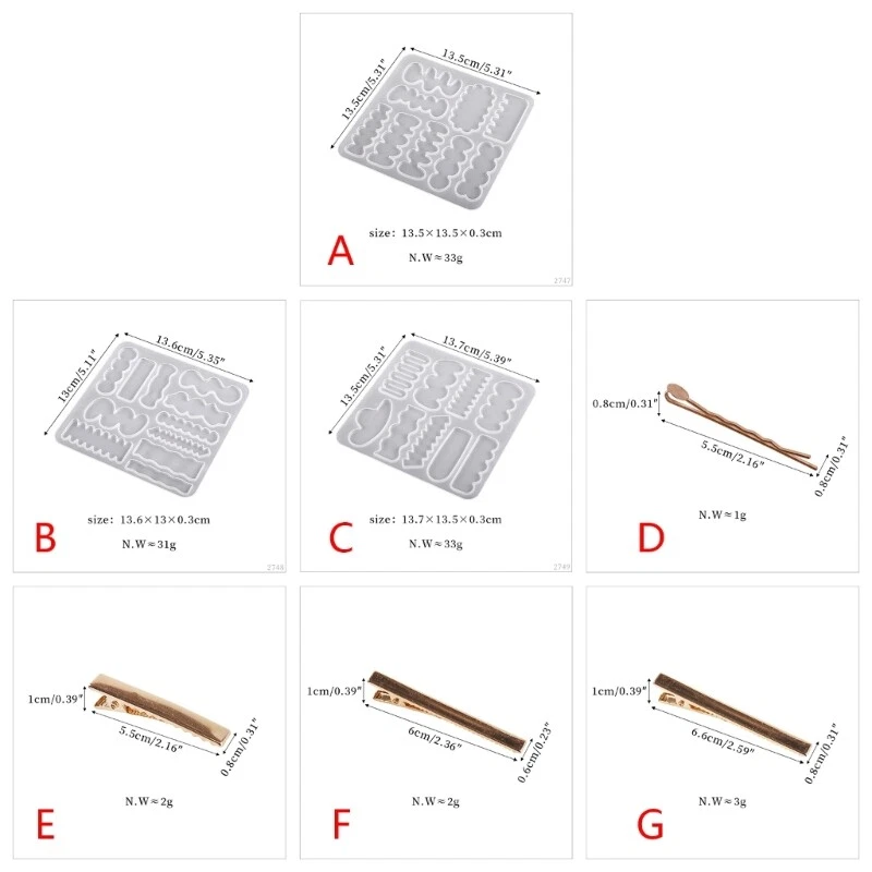Features: Quality Material: Hair barrettes molds are made of quality silicone material, soft and flexible, easy to demold, reusable. Easy to use and clean.you can clearly view the inside of the mold. Easy to Demold: Just twist the silicone mould and release your creation out of it after the resin is completely cured. Then you will get the pretty resin hair clips after put it on the hair barrettes. Fun DIY: Put the resin into the hairclips silicone mold, you can also add pigment, and embeds different kinds of embellishments or fillers. It is easy to wash and cleaning with soap and water. DIY Gift: Silicone Barrettes mold is the best gift for diy lover, which can use different colors of materials to make special product. A best select for those who are love of DIY Wide Application: Can be applied to DIY different resin jewelry, such as hair clips, keychain, earrings, necklaces, pendant, and etc. You can also give your handicrafts to your family and friend. Specifications: Material: Silicone Color: As The Picture Shows Size: As The Picture Shows Package Includes: 1Pc Silicone Hair Clip Mold note: Please allow 1-2cm error due to manual measurement. Please make sure you do not mind before you bid. Due to the difference between different monitors, the picture may not reflect the actual color of the item. Thanks!